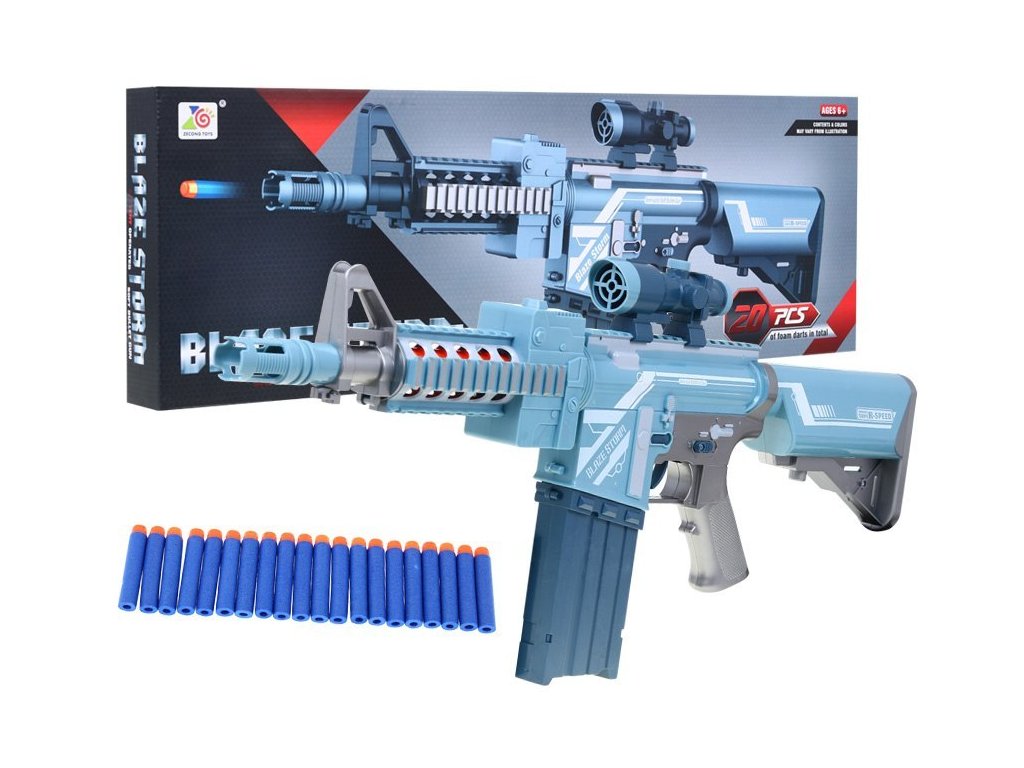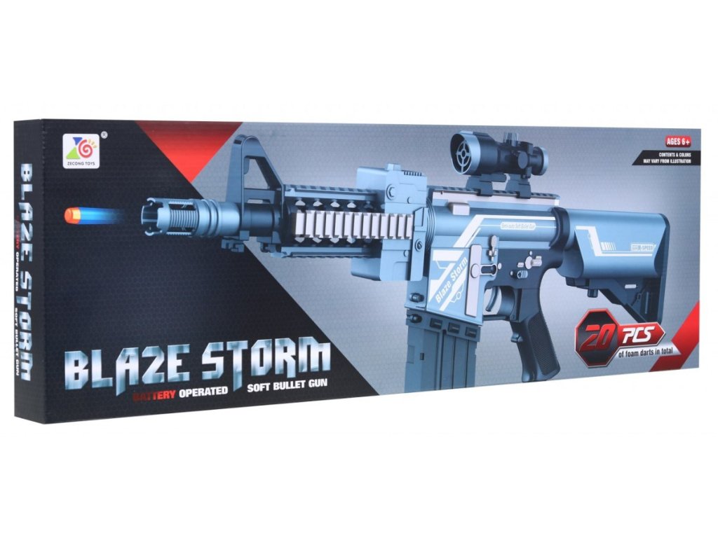 Dětský samopal Blaze Storm Silver je snem každého chlapce. Tento přesný poloautomatický samopal se zaměřovačem se nabíjí měkkými náboji, to znamená, že hraní s touto hračkou je zcela bezpečné a nehrozí dítěti žádné zranění. Jedno stisknutí spouště vystřelí jeden náboj, přidržením spustíte sérii třech výstřelů. Jedná se o skvělou zábavu pro chlapce a můžete nám věřit, že ke hře s tímto samopalem se rádi zapojí i tatínkové.