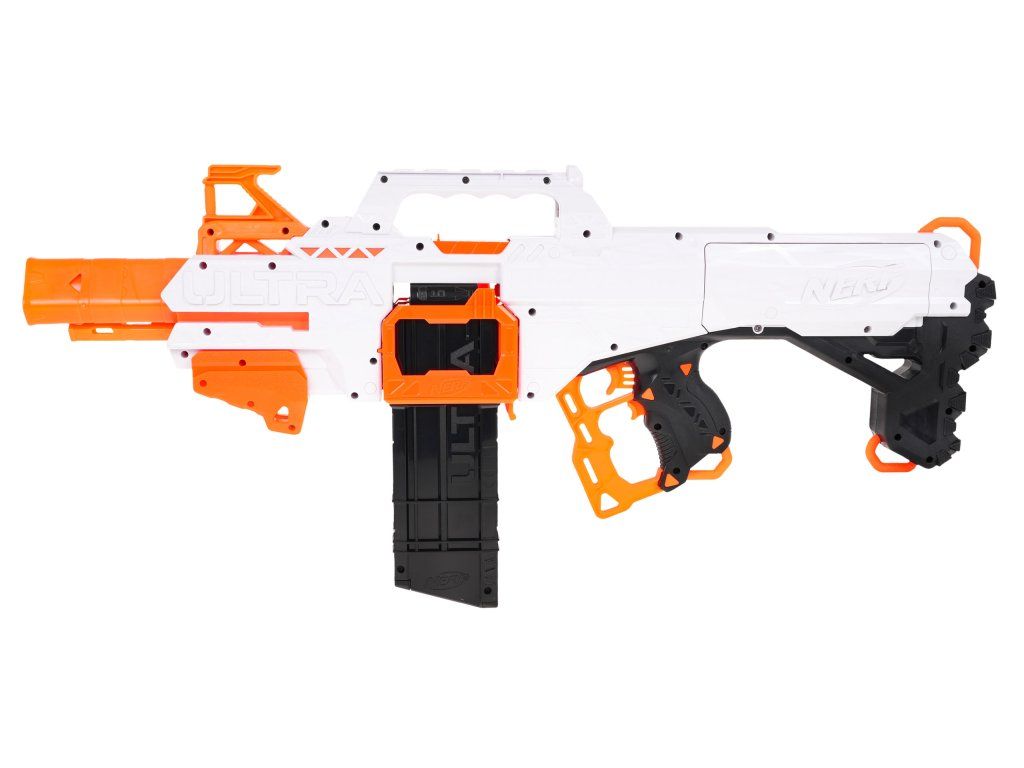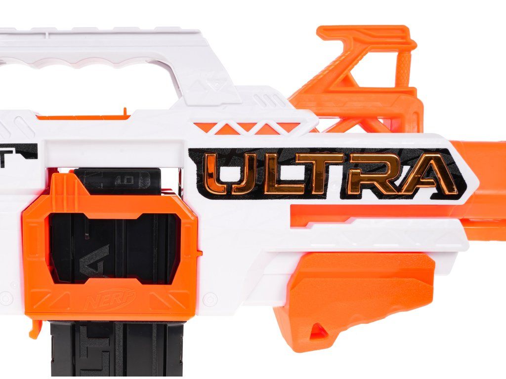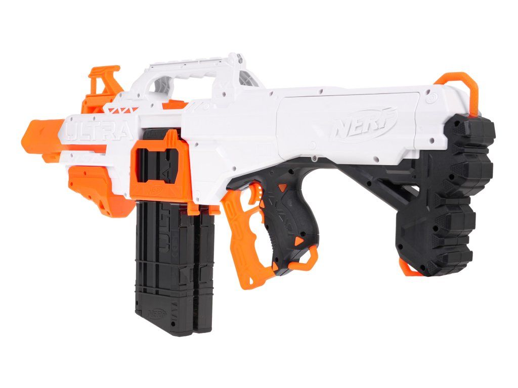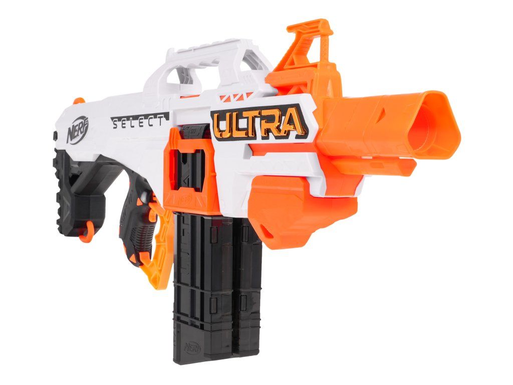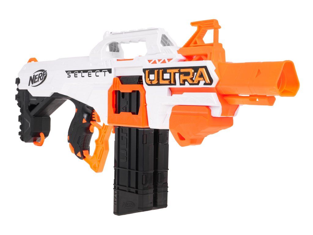 Dětský odpalovač Nerf Ultra Select je revoluční novinkou, se kterou si užijete zábavu na maximum a je snem každého chlapce. Do zbraně můžete nabít 20 nábojů, které se vkládají do dvou zásobníků. Zbraň má možnost rychlé střelby a přepínání mezi zásobníky. Je napájena bateriemi, které nejsou součástí balení. Dosah střely je až 36 metrů. Jedná se o skvělou zábavu pro chlapce a můžete nám věřit, že ke hře s tímto samopalem se rádi zapojí i tatínkové.
