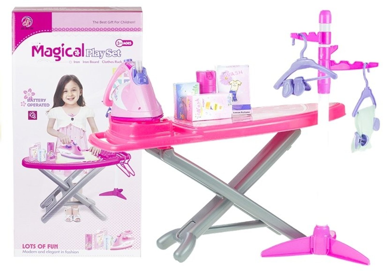 Dětská souprava žehlící prkno se žehličkou Magical Playset přemění Vaše dítě v opravdovou paní domu. Součástí soupravy je kromě žehlícího prkna také žehlička na baterie, která vydává zvuky a svítí, stojánek na prádlo, ramínka, klamerky, textilie a imitace pracích prostředků. Je tedy kompletně vybavená na žehlení po velkém prádle. Hračka je určena pro děti od 36 měsíců věku.
