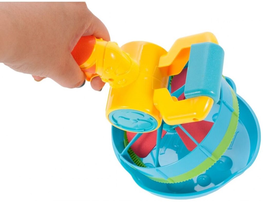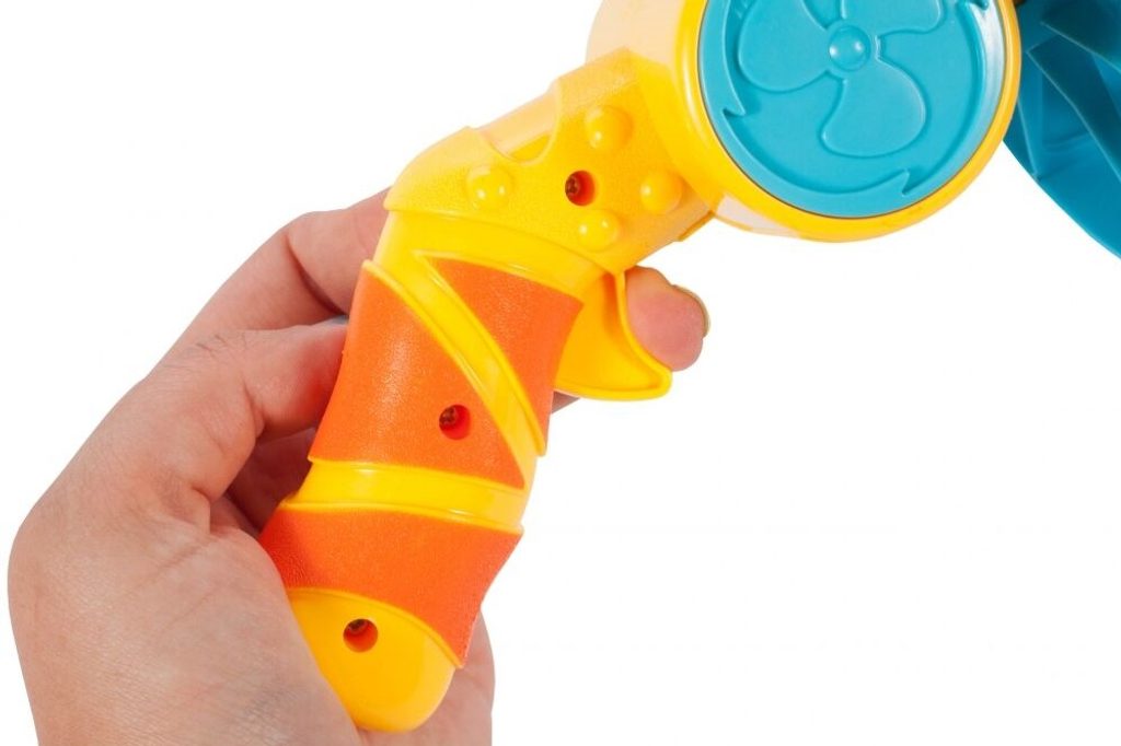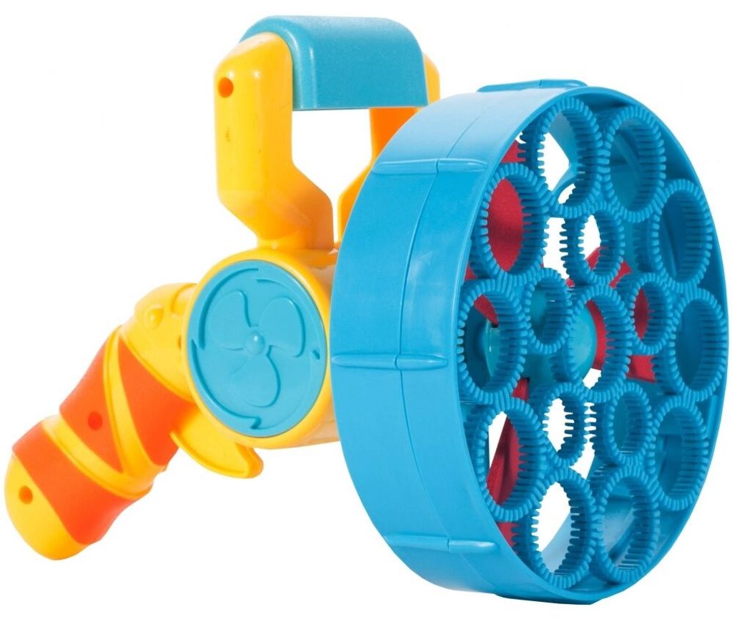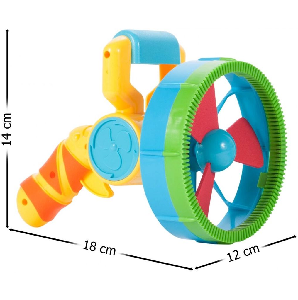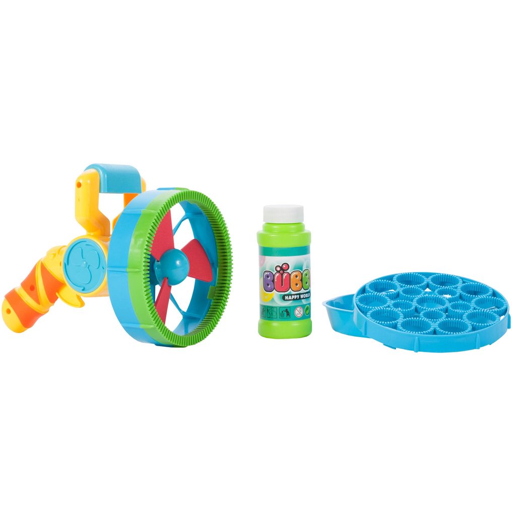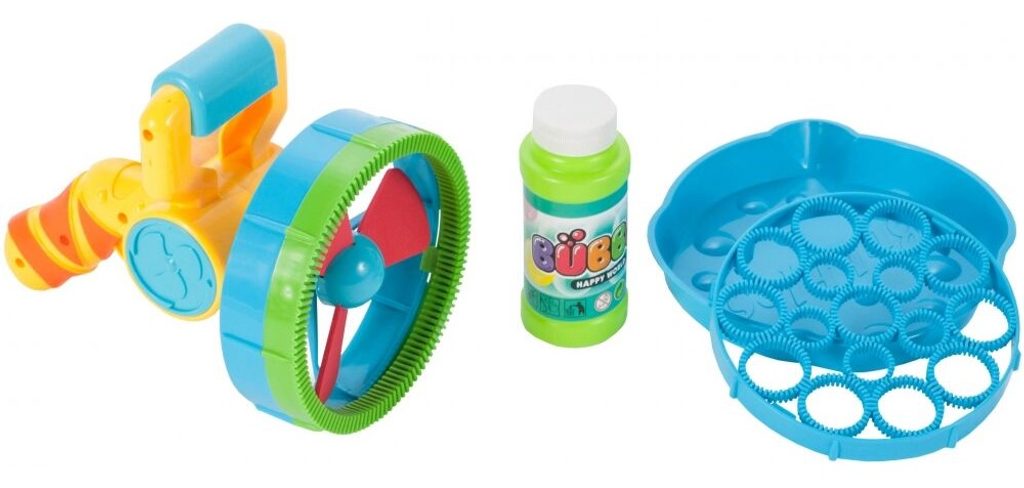 Dětský bublifuk ve tvaru větráčku s rukojeťí Bubble Machine dokáže vytvořit nekonečné množství bublin. Mýdlový roztok je třeba nalít do misky a poté nasadit obruč na bublinkovač. Zmáčknutím spouště se spouští větráček - generátor bublin a začnou se vytvářet buď malé nebo velké bubliny podle toho jaká obruč je nasazena. Hračka je vyrobena z plastu a je určena pro děti od 36 měsíců věku.