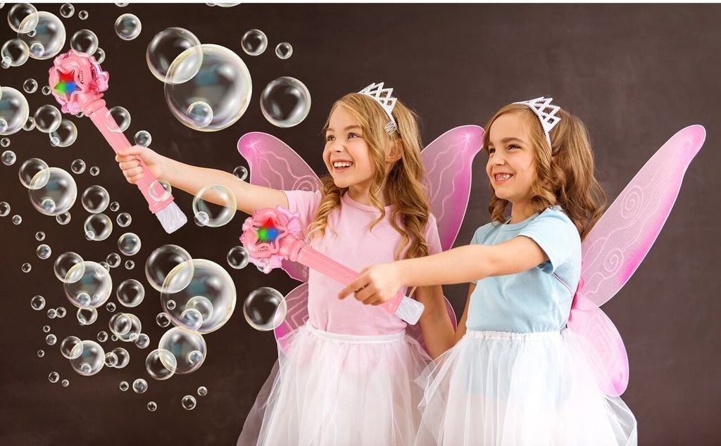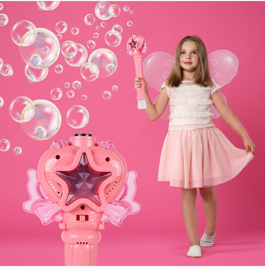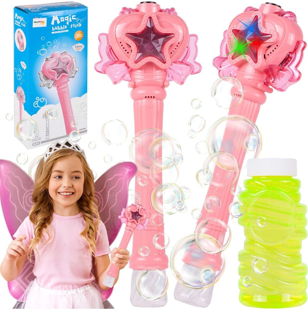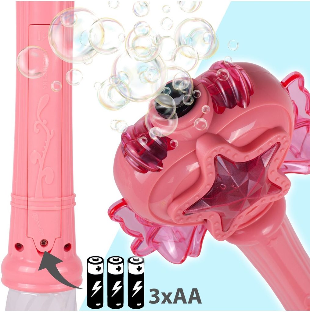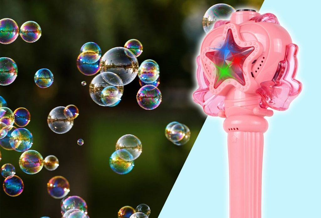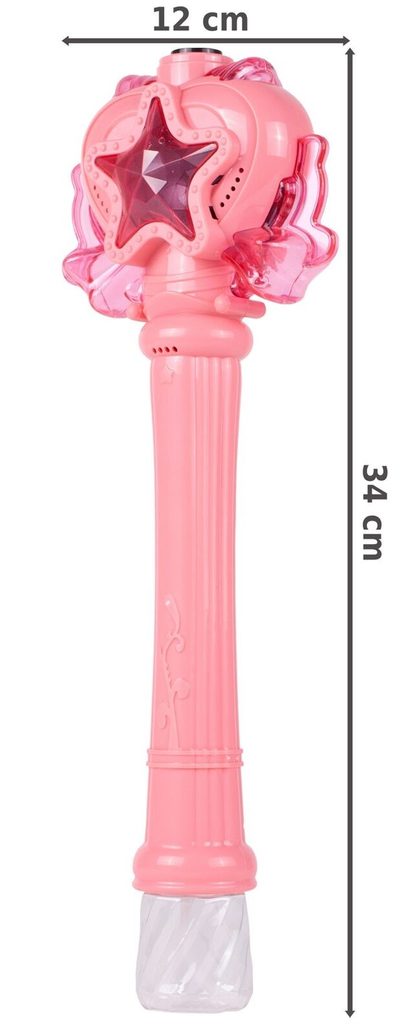 Dětský bublifuk ve tvaru magické hůlky dokáže vytvořit nekonečné množství bublin. Nejdříve je třeba nalít mýdlový roztok do zásobníku ve spodní části bublifuku. Zmáčknutím tlačítka se spouští generátor bublin spolu s melodiemi a světýlkem. Po ukončení hry je třeba zásobník vylít a vytřít ho suchým hadříkem. Hračka je vyrobena z plastu a je určena pro děti od 36 měsíců věku.