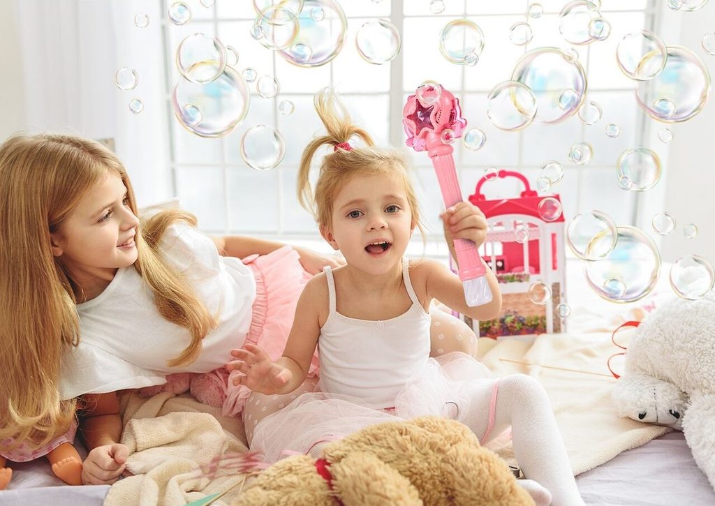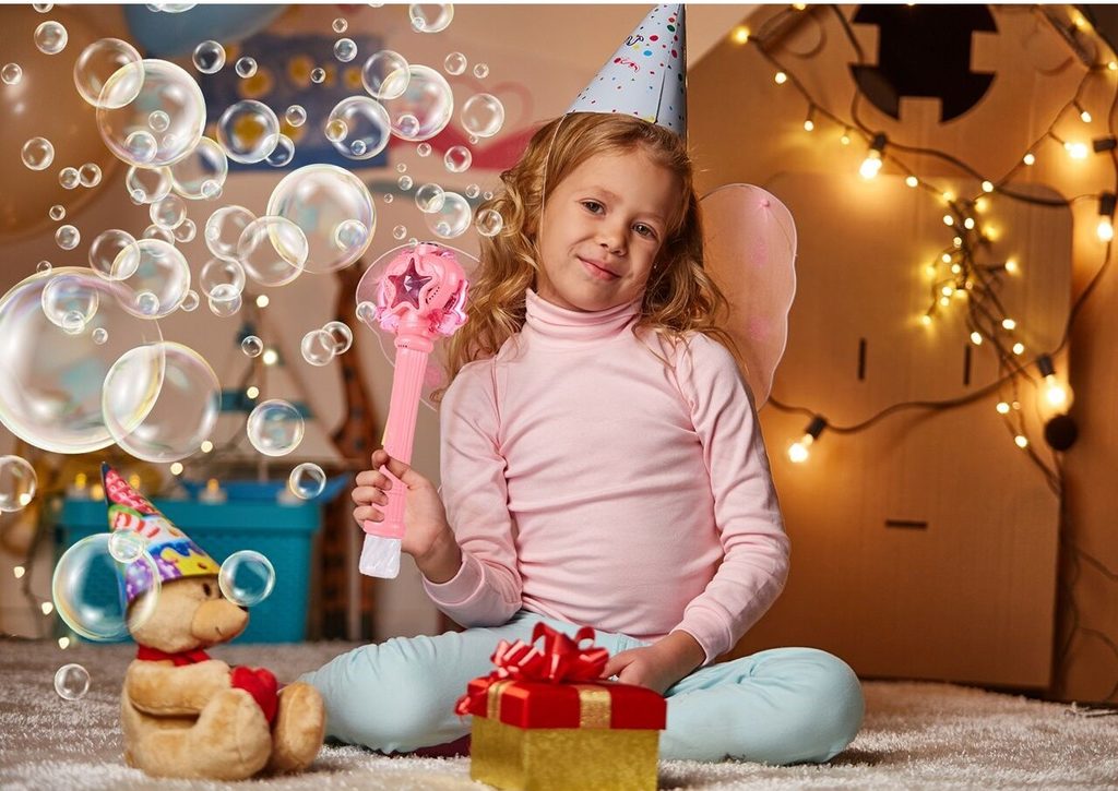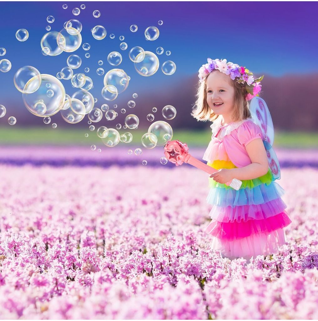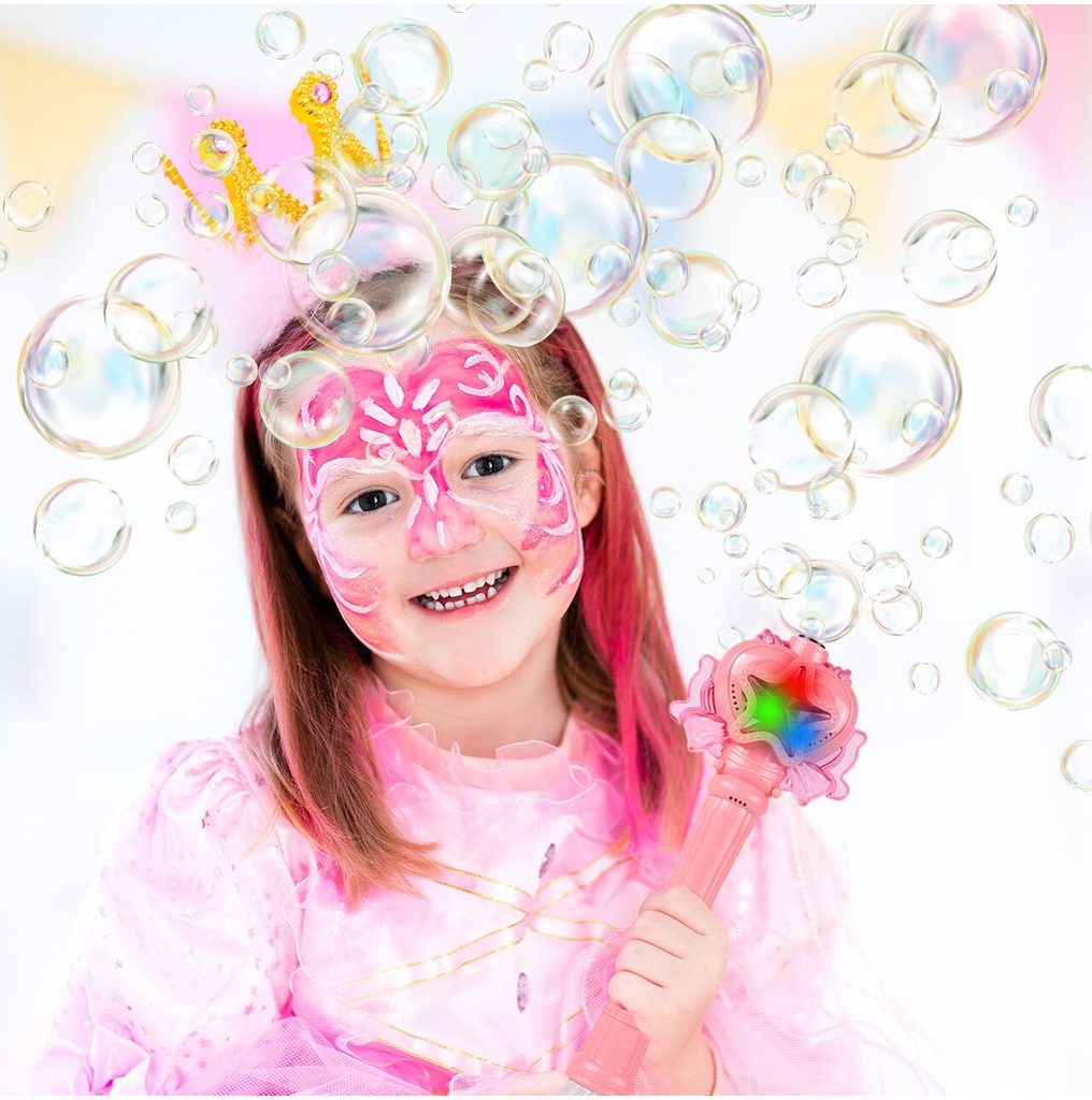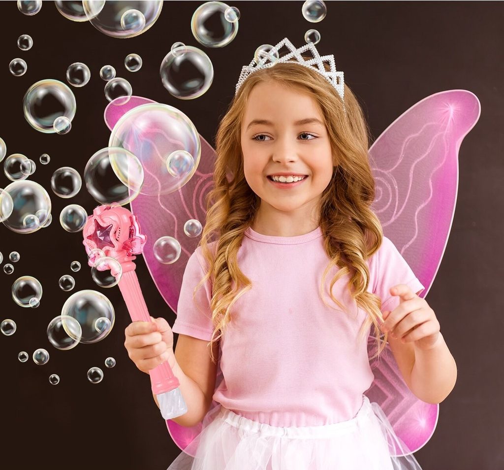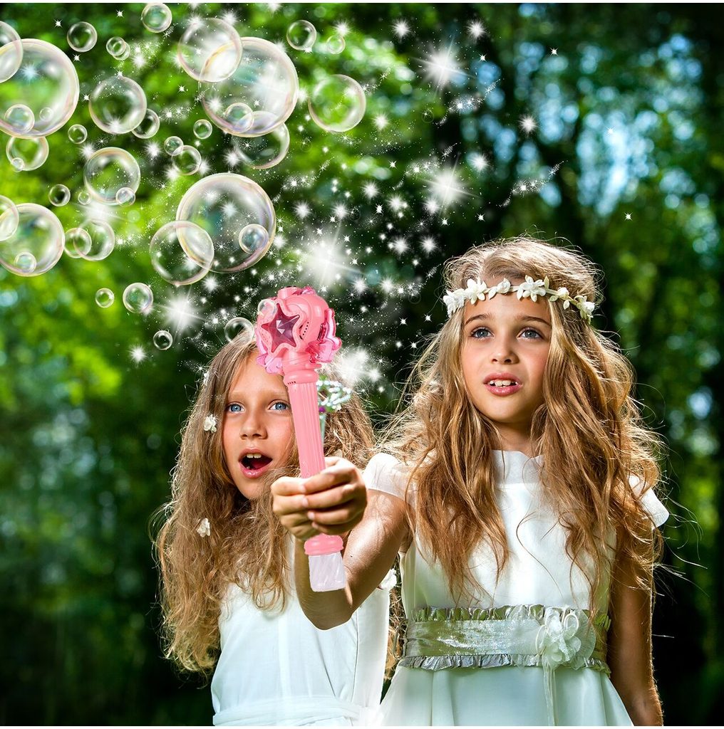 Dětský bublifuk ve tvaru magické hůlky dokáže vytvořit nekonečné množství bublin. Nejdříve je třeba nalít mýdlový roztok do zásobníku ve spodní části bublifuku. Zmáčknutím tlačítka se spouští generátor bublin spolu s melodiemi a světýlkem. Po ukončení hry je třeba zásobník vylít a vytřít ho suchým hadříkem. Hračka je vyrobena z plastu a je určena pro děti od 36 měsíců věku.