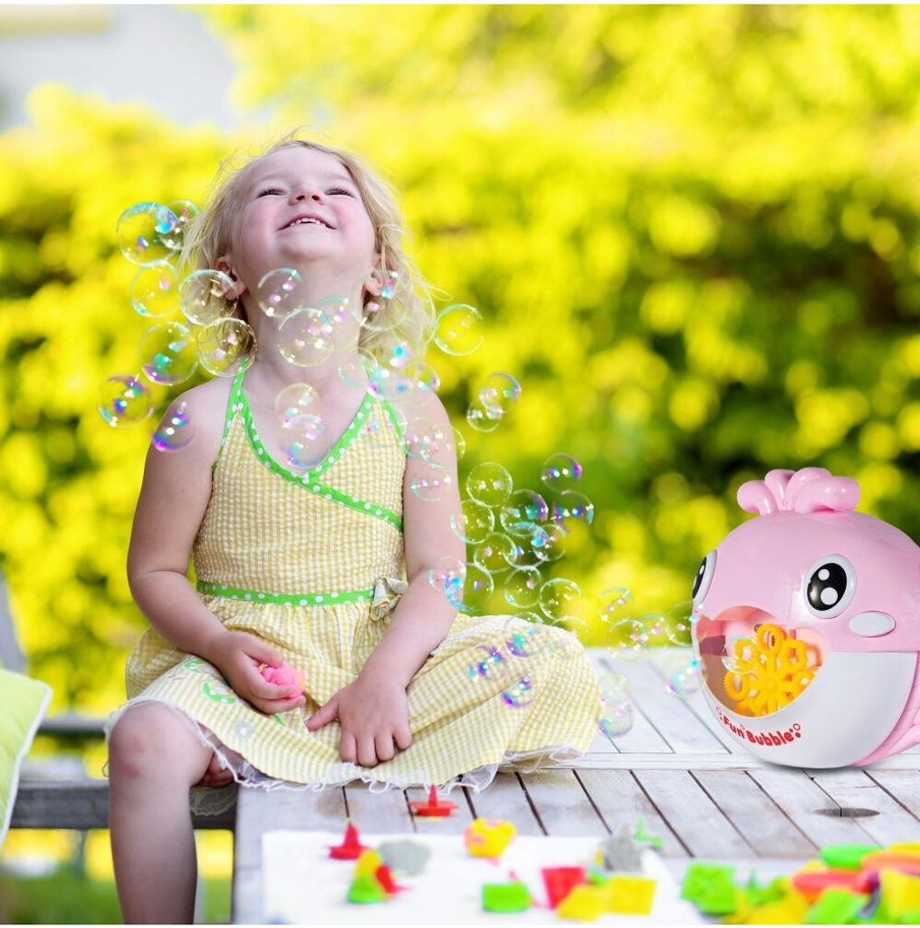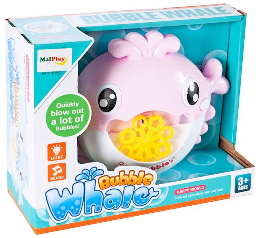 Dětský bublinkovač do vany Bubble Whale ve tvaru rybky dokáže vytvořit nekonečné množství bublin. Bublinkovač se umístí na plochý okraj vany, přilehlé místo nebo ho lze zavěsit. Poté je třeba vlít vodu s mýdlem do otvoru v ústech hračky, po skončení hry je třeba přebytečnou tekutinu vylít. Zmáčknutím tlačítka se spustí generátor bublin. Ve vybavení je také melodie a svítící dioda. Hračka je vyrobena z plastu a je určena pro děti od 36 měsíců věku.