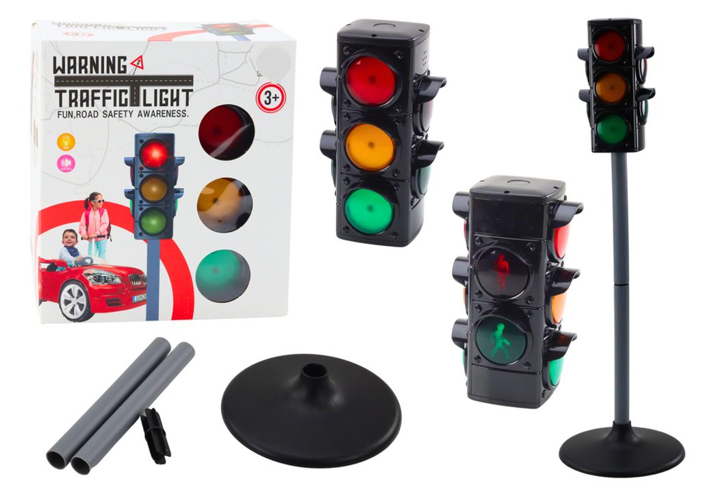 Dětský semafor uspokojí a naučí dopravním předpisům každého malého řidiče. Lze jho využít venku i doma. Je vybaven světelnými i zvukovými efekty. Semafor je ideální pro jízdu na kole nebo v elektrickém vozítku. Hračka je určena pro děti od 3 let věku.