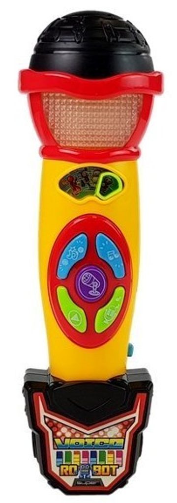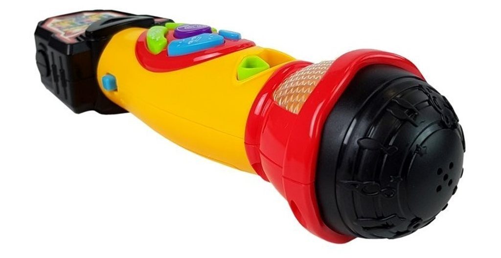 Dětský karaoke mikrofon se světelnými efekty, možností nahrávání a přehrávání přemění Vaše dítě ve skutečnou zpěvačku nebo zpěváka. Je vybavený zabudovanou diodou, která vydává barevné světýlka. Má 20 přednastavených skladeb a má funkci změny hlasu ve 4 různých hudebních stylech. Hračka je vyrobená z kvalitního plastu a určena pro děti od 12 měsíců.
