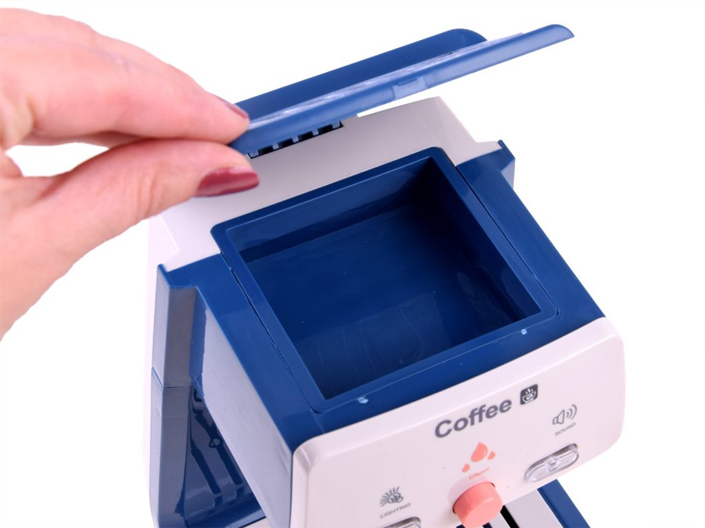 Dětský kávovar Coffee Machine umožní Vašemu dítěti uvařit kávu pro své oblíbené panenky nebo pro rodiče. V horní části je umístěný zásobník na vodu. Zmáčknutím tlačítka se voda načerpá a teče do šálku, který je součástí balení. Ve výbavě jsou také zvukové a světelné efekty. Hračka je určena pro děti od 36 měsíců věku.