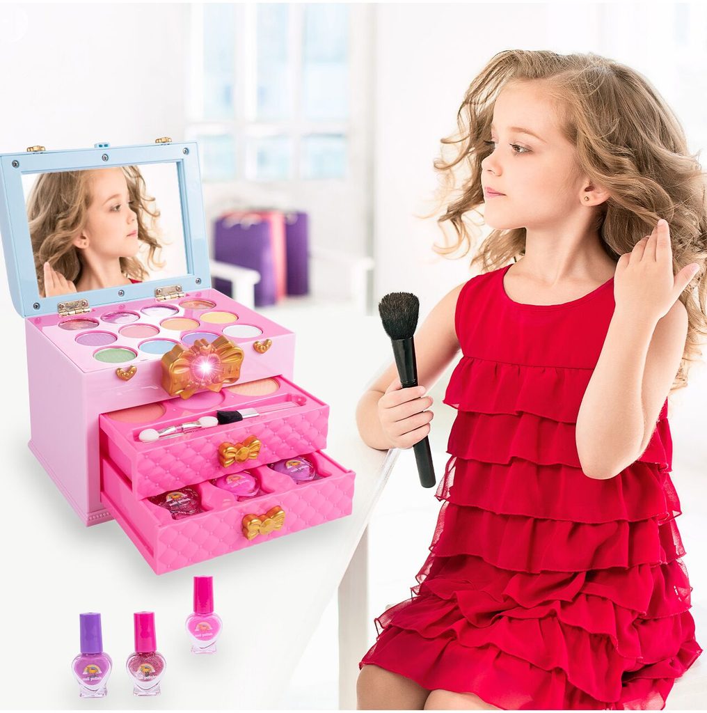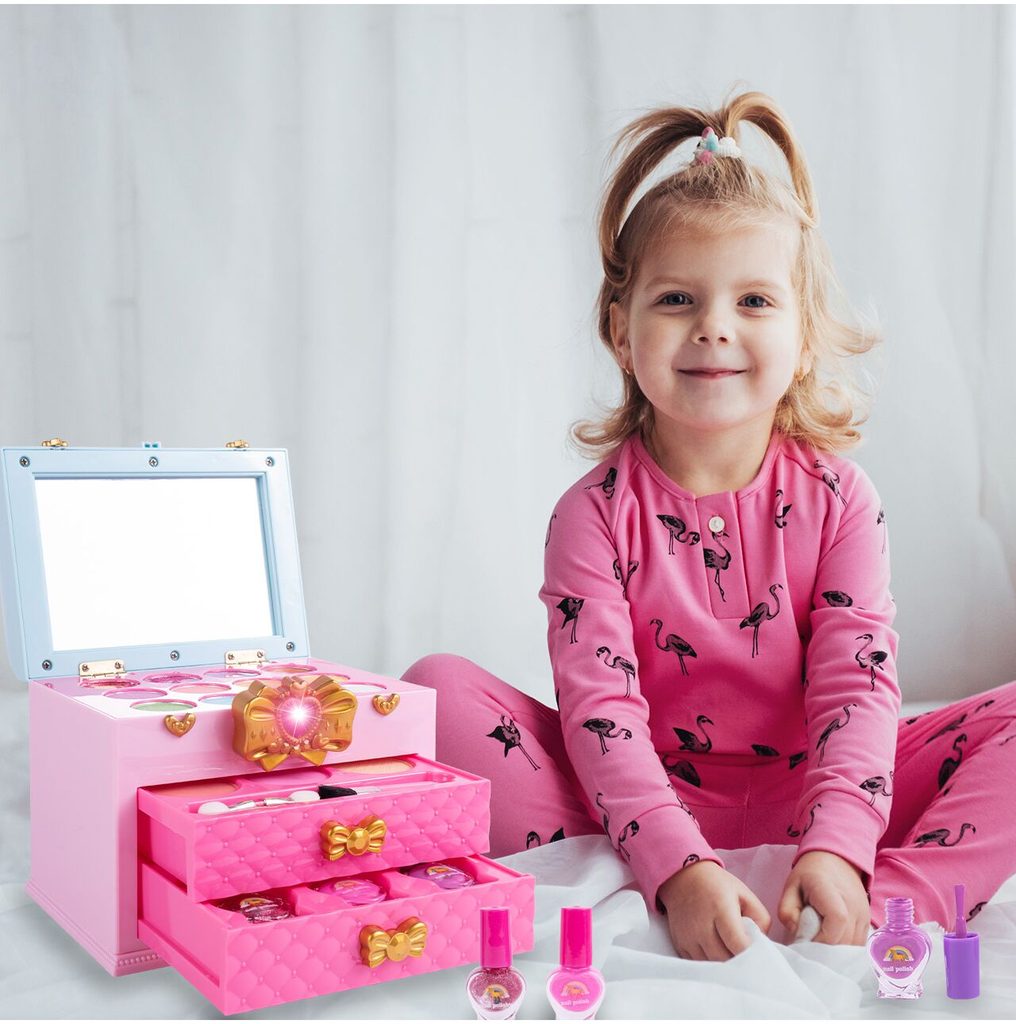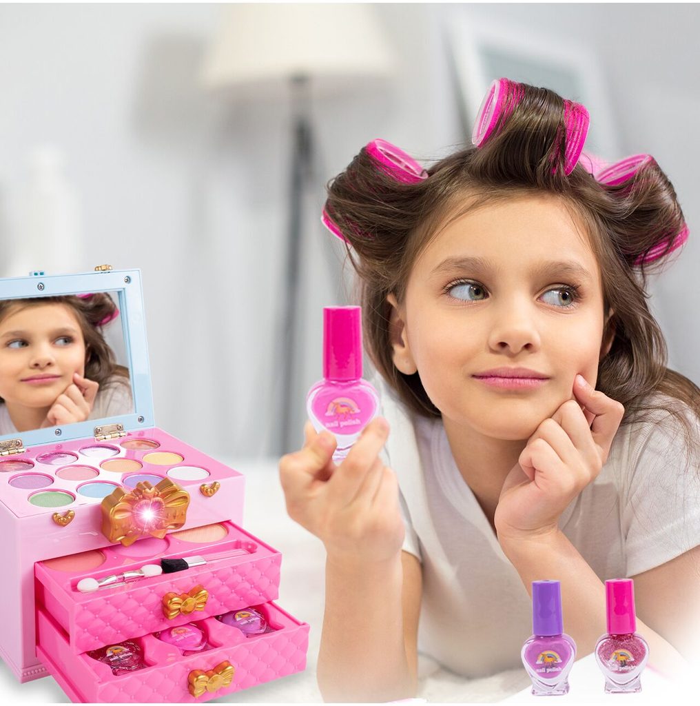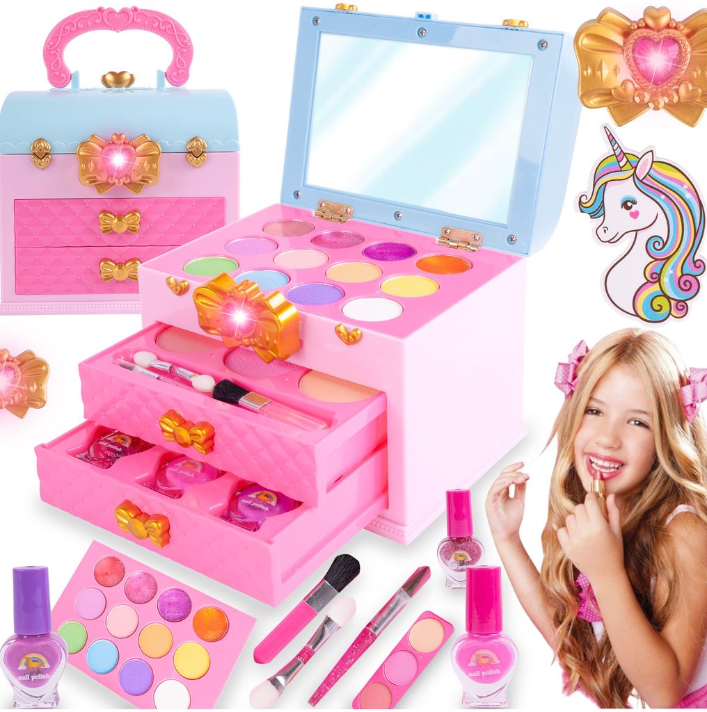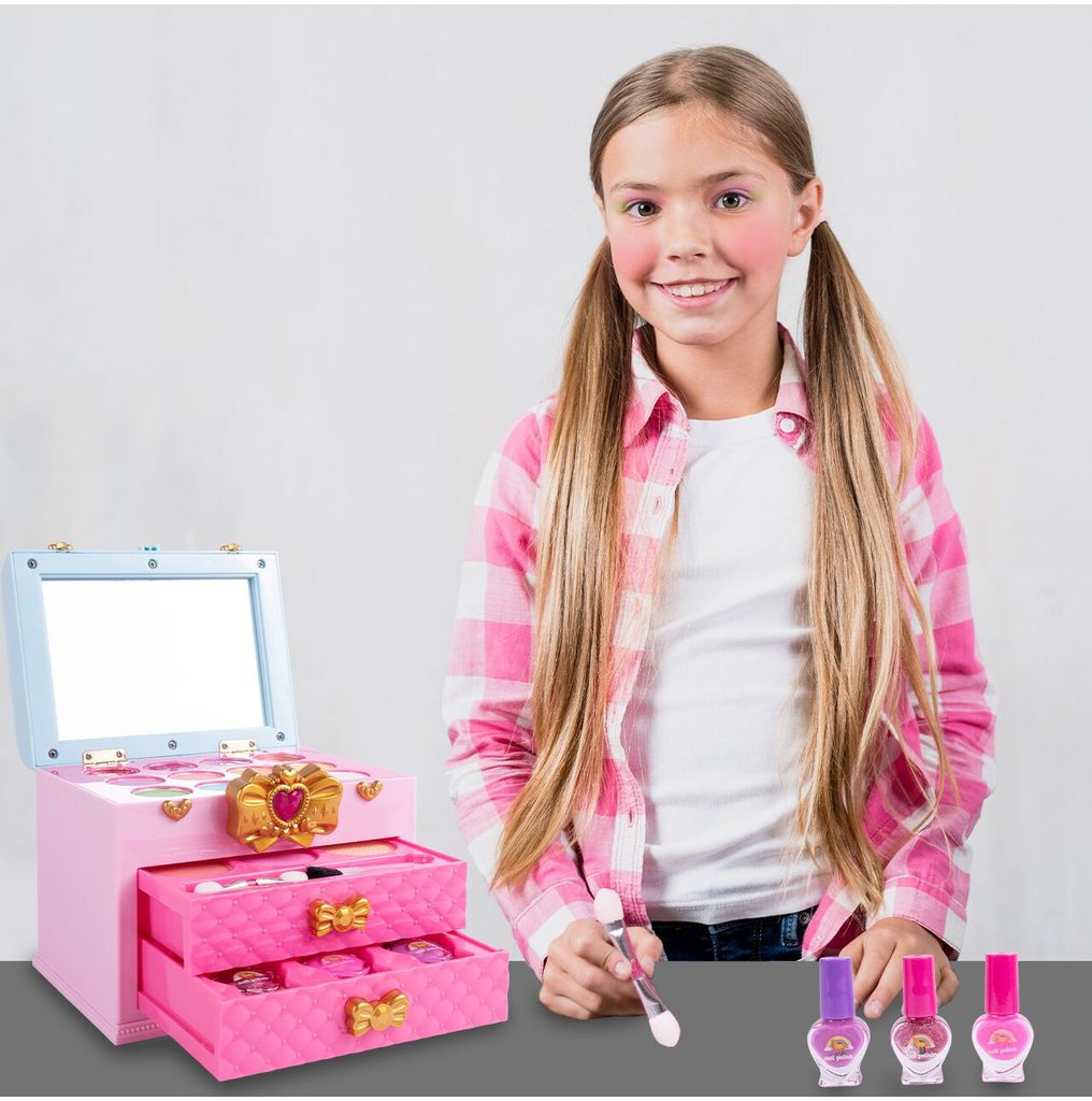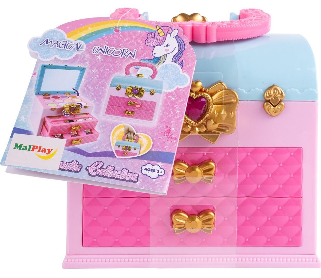 Kompletní sada dětského líčení v otevíracím kufříku Magic Unicorn je ideální hračkou pro každou malou princeznu, která zde najde vše potřebné pro líčení. Kufříček lze jednoduše složit a přenášet. Součástí setu jsou laky na nehty, lesky na rty, stíny, pudry, aplikátor a štěteček. Vše je vyrobeno z bezpečných materiálů. Make-up lze jednoduše odstranit vatovými tampónky namočenými v mýdlovém roztoku. Hračka je vyrobená z plastu v pestrobarevném provedení a určena pro děti od 3 let.
