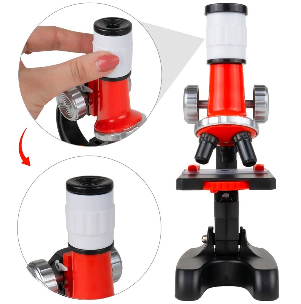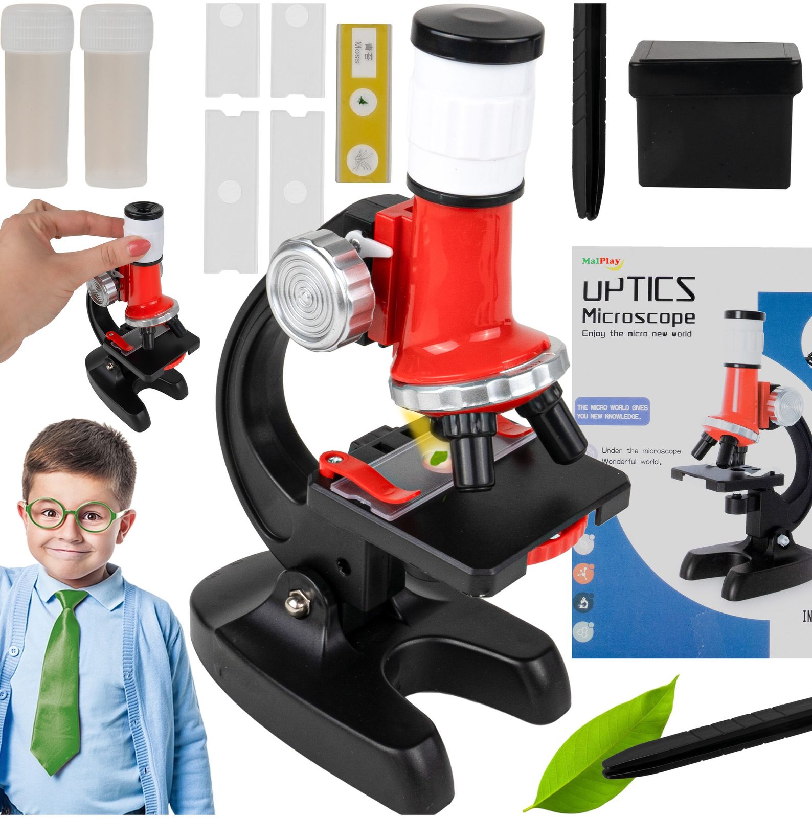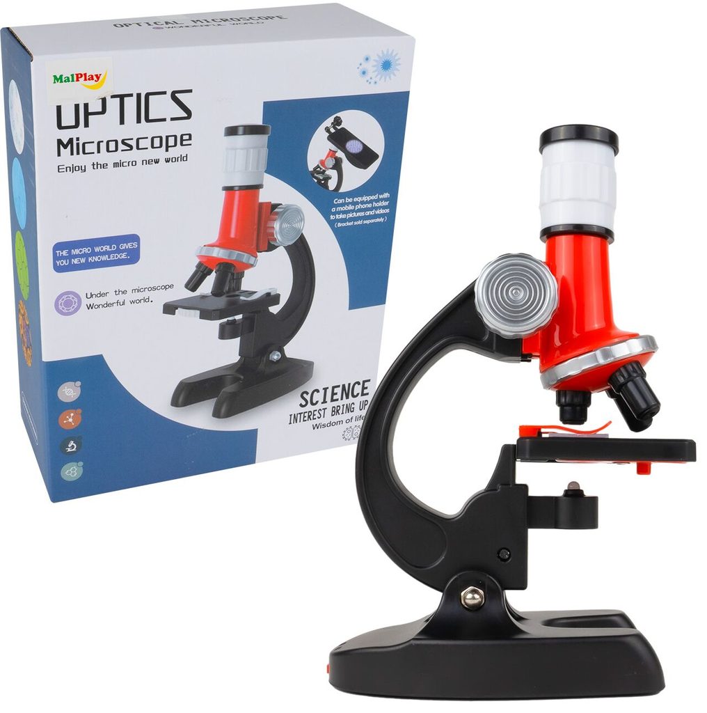 Kompletně vybavený mikroskop Optic Microskope bude skvělým dárkem pro každého malého vědce, který rád pozoruje věci, které nelze vidět pouhým okem. Díky mikroskopu bude Vaše dítě poznávat svět kolem nás z bližší vzdálenosti než obvykle. Mikroskop ukáže malému průzkumníkovi nádherný svět mikrobiologie, vědy a přírody. Mikroskop má tři druhy zvětšení 100x /400x /1200x. Je vybavený také vestavěnou LED žárovkou pro osvětlení vyšetřovaných vzorků. Mikroskop má vše, co potřebujete k zobrazení mikrosvěta. Hračka je určena pro děti od 6 let.