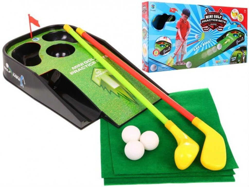 Minigolfová sada je ideální hračka pro děti, které rády tráví čas aktivně. Hračka je vybavena vším, co začínající golfista potřebuje. Sada obsahuje podsvícený podstavec s důlky a zvukem. Sada dále obsahuje 2 golfové hole, 3 golfové míčky, praporek a imitaci trávníku. Hračka je velmi pěkně a pečlivě vyrobena, dítěti jistě poskytne dlouhé hodiny radostné hry s kamarády nebo rodiči.