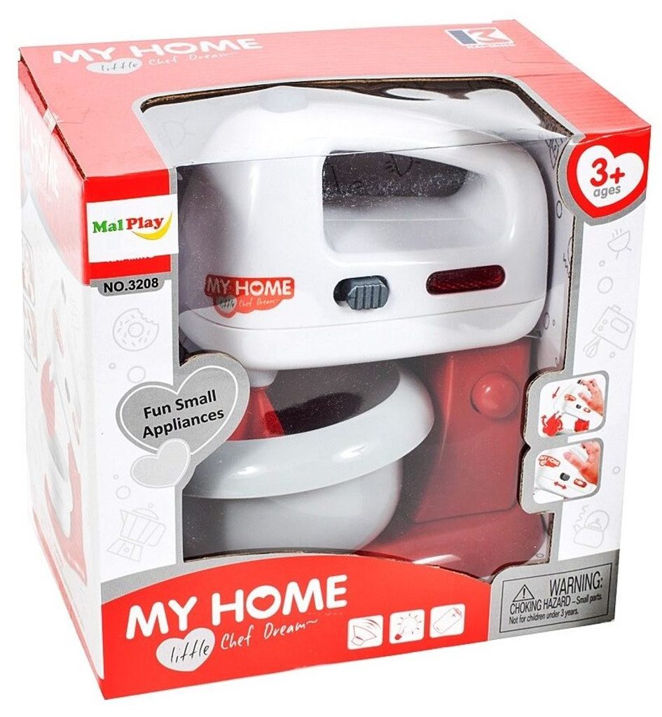 Dětský mixér My Home dokonale napodobuje práci skutečného kuchyňského robota. Součástí sady je kromě mixéru s otočnými nástavci také miska, kterou lze použít i samostatně. Mixér je dále vybaven světelnými efekty. Hračka je určena pro děti od 36 měsíců věku.