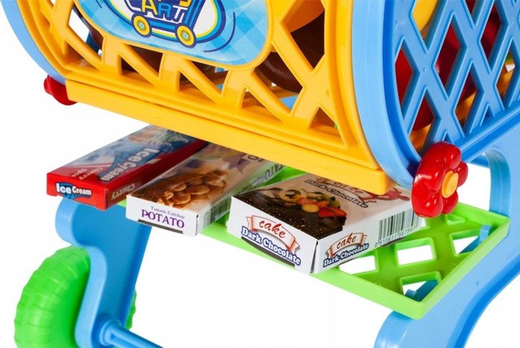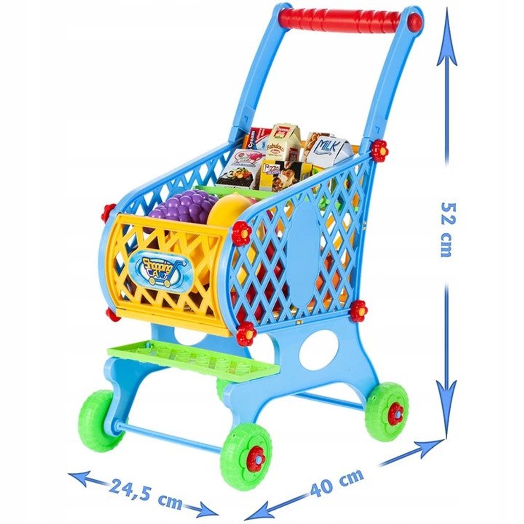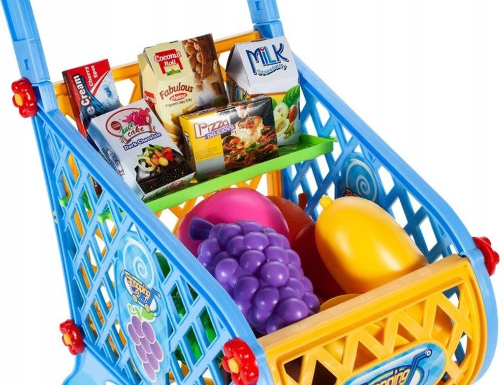 Dětský nákupní košík Funny Chart přemění Vaše dítě ve skutečného zákazníka v obchůdku. Je vybaven vším důležitým co takový velký nákup obsahuje. Najdete zde imitace ovoce, zeleniny, nápojů, potravin, vajíček, sladkostí a mnoho dalších. Hračka je určena pro děti od 36 měsíců věku.