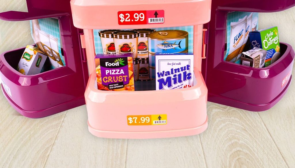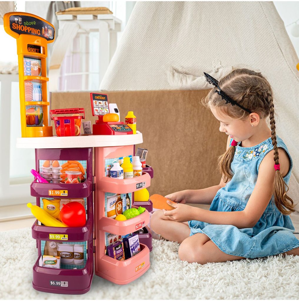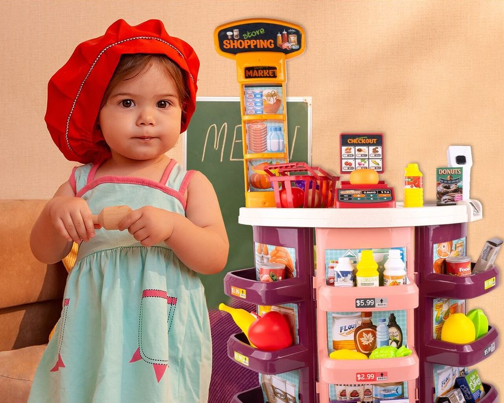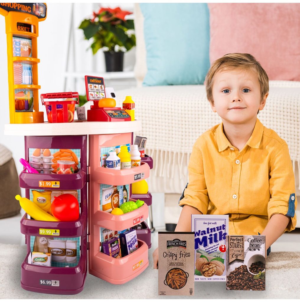 Dětský obchůdek Supermarket s nákupním košíkem přemění Vaše dítě ve skutečného prodavače. Je vybaven vším důležitým co takový malý obchodník potřebuje. Najdete zde pokladnu, čtečku čárových kódů, imitace ovoce zeleniny, bankovky a také různé balení potravin. Obchůdek má samozřejmě police, kde může být vše přehledně vystaveno. Hračka je určena pro děti od 36 měsíců věku.