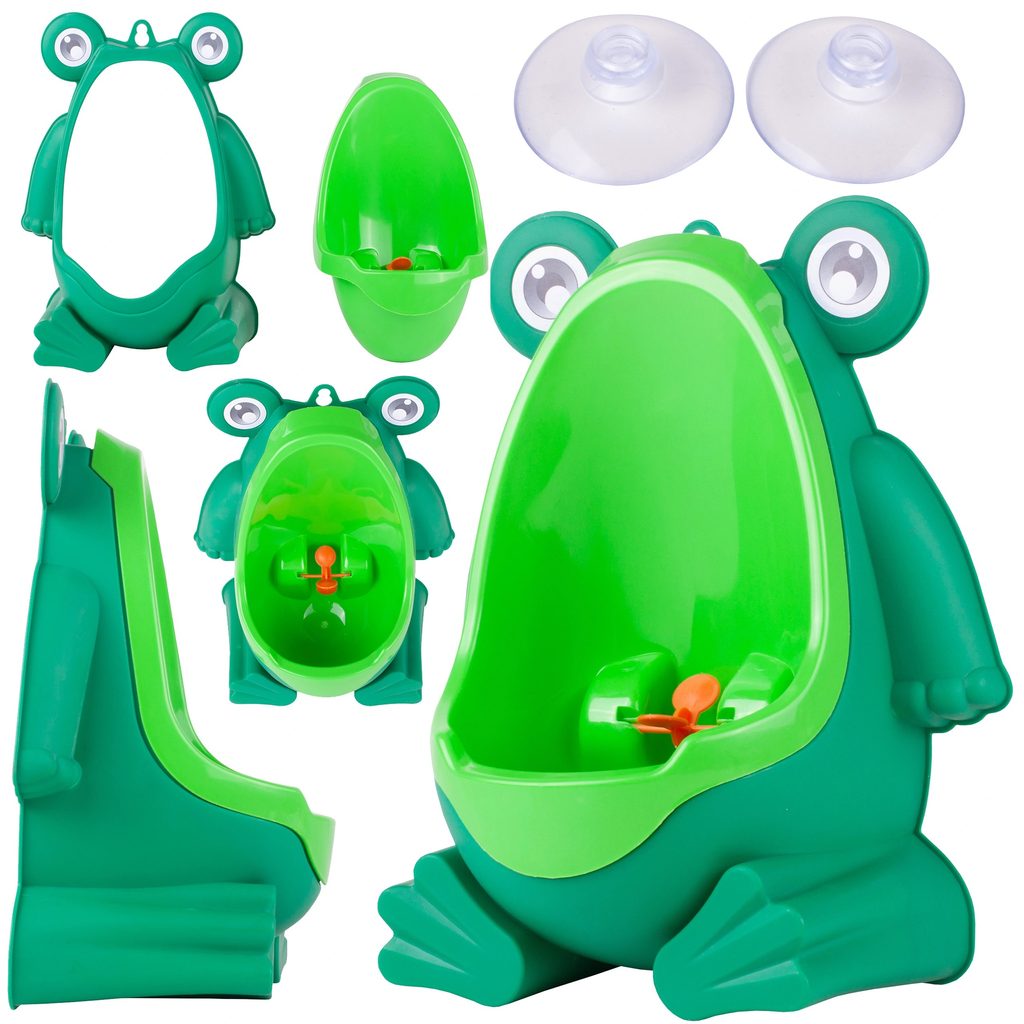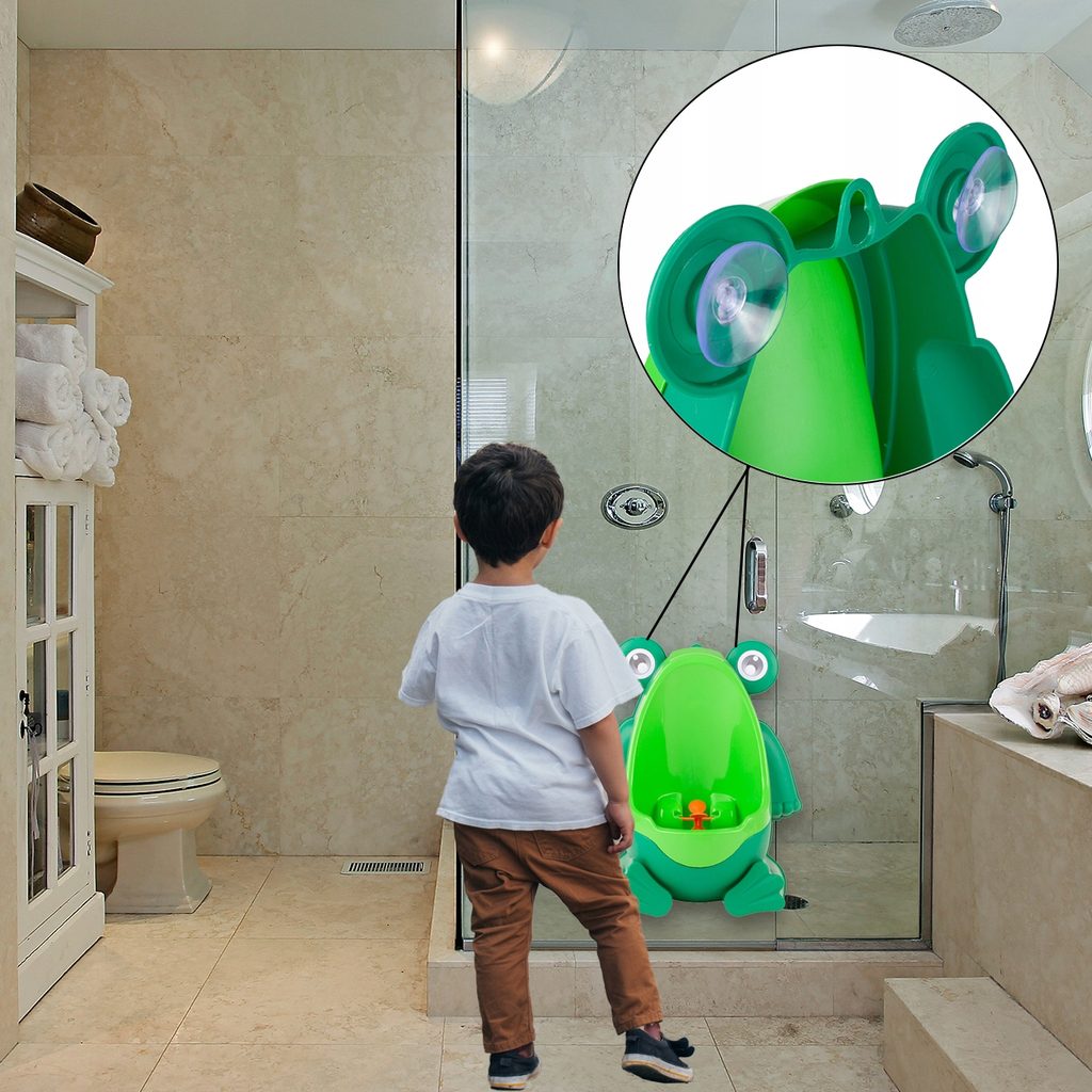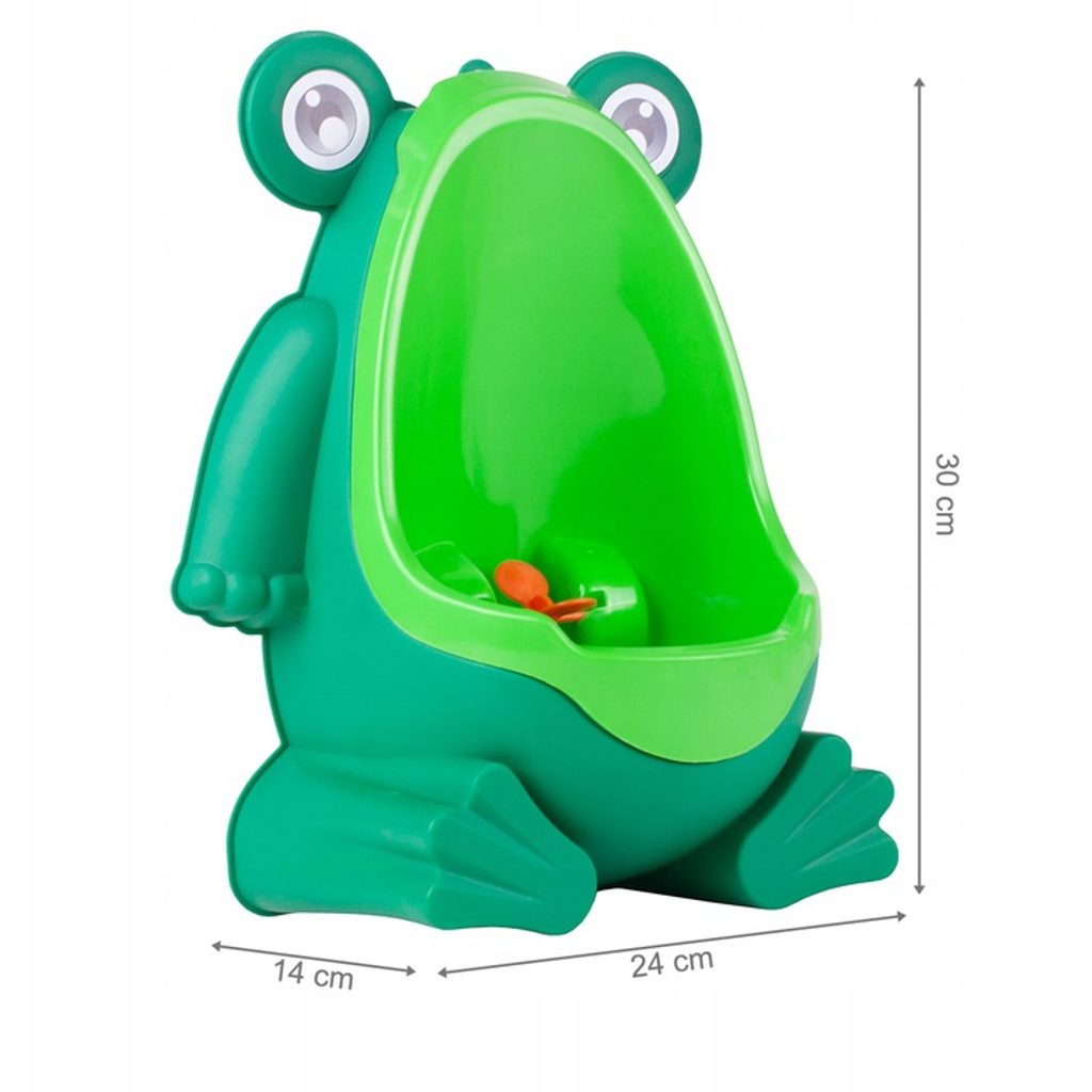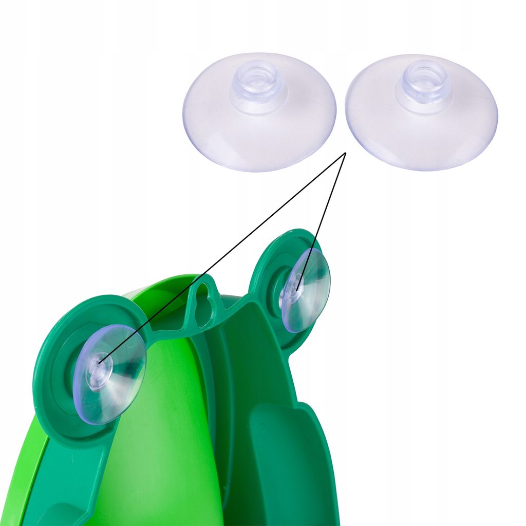 Dětský pisoár Žabka je ideálním prostředkem pro nauku samostatného používání toalety vestoje. Montáž je velmi jednoduchá a to pomocí přísavek, díky kterým můžete navíc nastavit výšku dle věku dítěte. Pisoár můžete připevnit také pomocí šroubů. Uvnitř je umístěn malý kolovrátek v provedení mlýnského kolo což je pro dítě ještě více zábavné. Vnitřní nádobka je vyjímatelná a omyvatelná čímž je zajištěna hygiena. Pisoár je určen pro děti od 3 let věku.