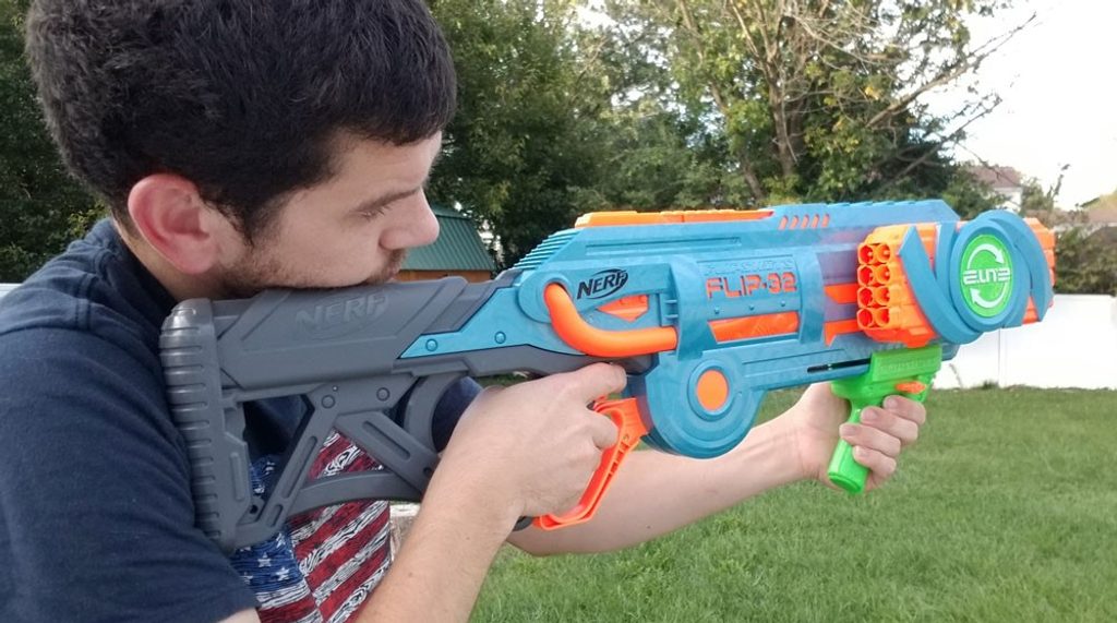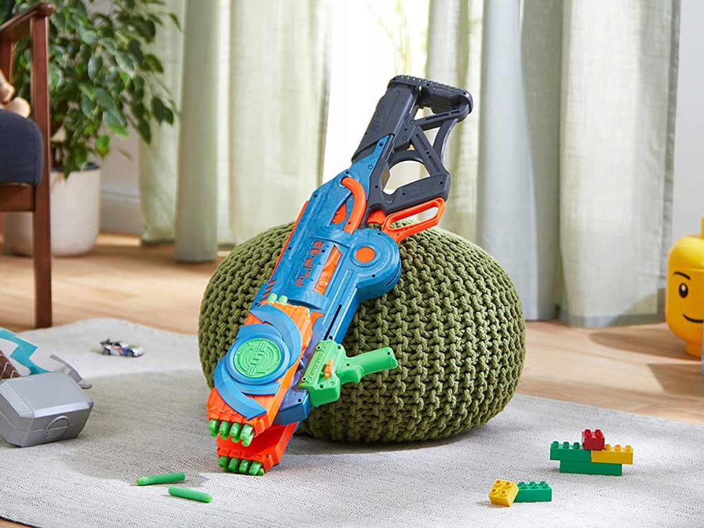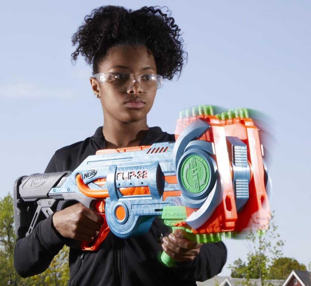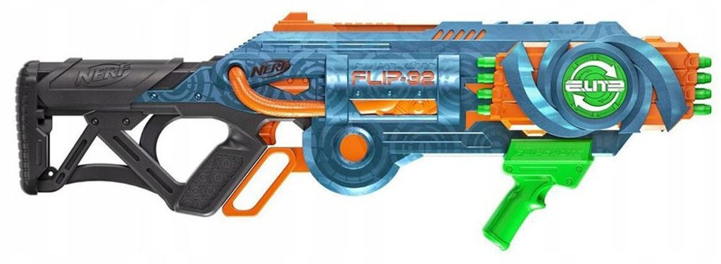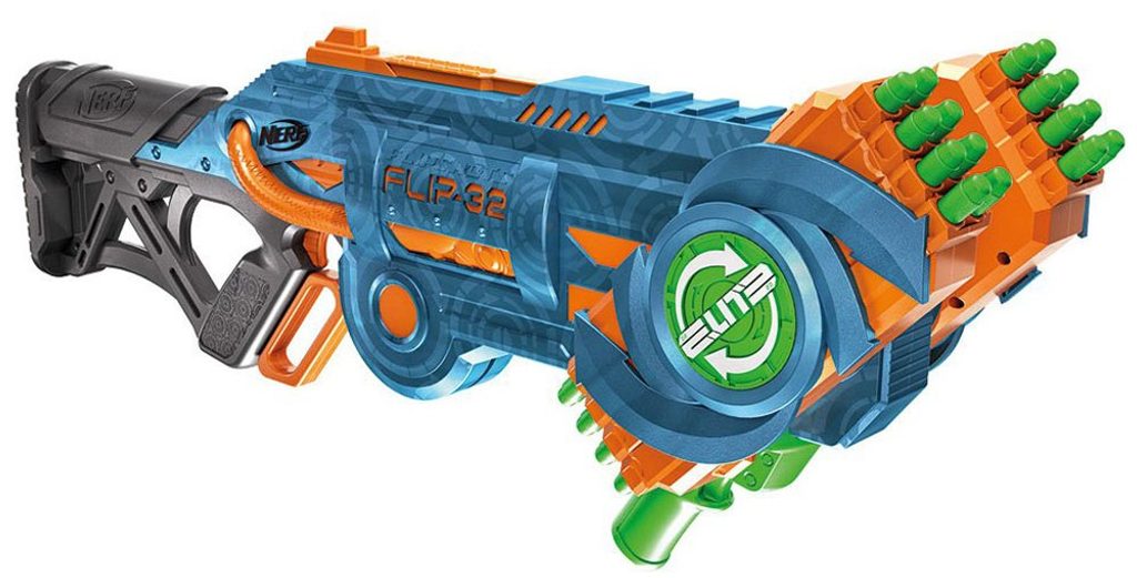 Dětský odpalovač Nerf Elite 2.0 Flip 32 je revoluční novinkou, se kterou si užijete zábavu na maximum a je snem každého chlapce. Hlavní předností je celková kapacita 32 nábojů. K dispozici jsou dva otočné zásobníky s kapacitou 16 nábojů. Pomocí dvoustupňové spouště lze vystřelit jeden náboj nebo rovnou dva zároveň. Jeden náboj vystřelíte a druhý můžete rovnou nabíjet, díky čemuž nabíjíte doslova za pochodu. Když náboje dojdou, stačí zmáčknout zelenou páčku a můžete využít dalších 16. Součástí sady je 32 kusů bezpečných nábojů. Jedná se o skvělou zábavu pro chlapce a můžete nám věřit, že ke hře s tímto samopalem se rádi zapojí i tatínkové.