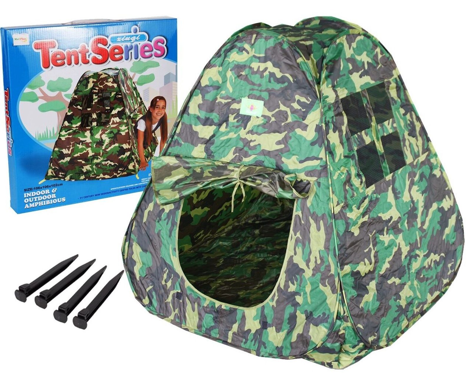 Dětský stan Army Style s vojenským motivem. Je vhodný jak do vnitřních prostor tak i pro venkovní použití. Je vybaven předním rolovacím bočními vchodem a dvěma bočními okénky. Svrchní materiál je polyester, podlaha je nepromokavá. Montáž stanu je velmi a snadná a rychlá, což oceníte zejména při jeho přemisťování.