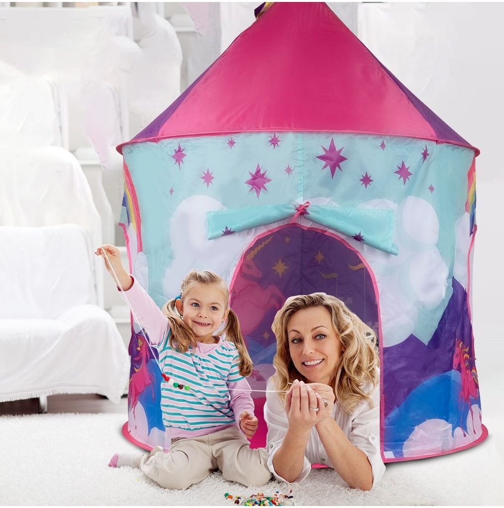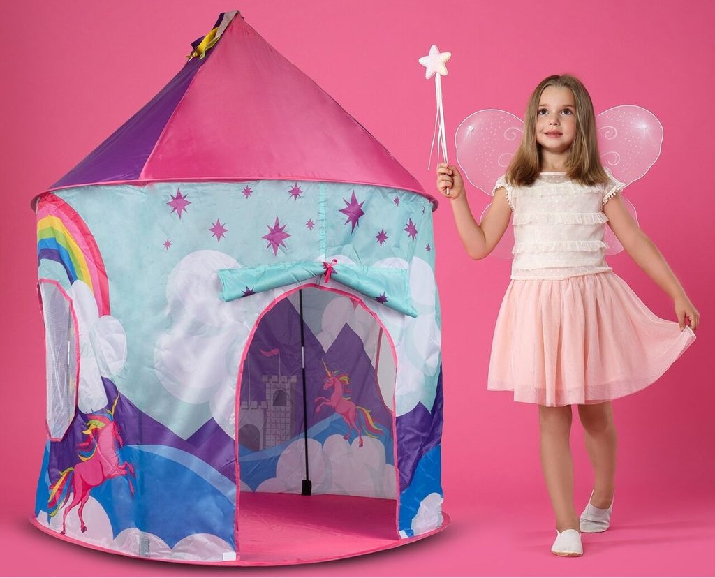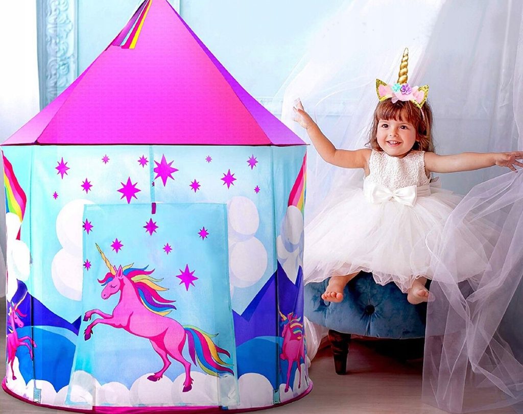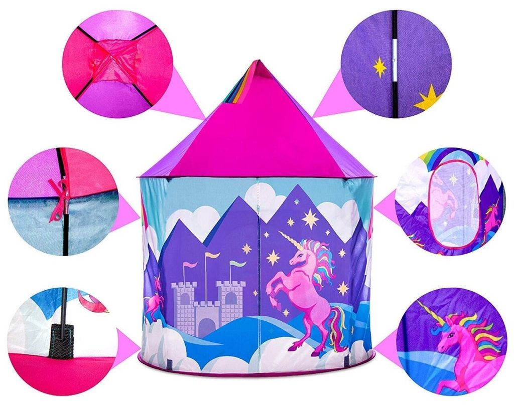 Dětský stan Unicorn Tent je ideálním místem na hraní pro každou holčičku. Je vhodný jak do vnitřních prostor tak i pro venkovní použití. Vchod do stanu je nastavitelný, můžete tak nastavit množství světla, které bude pronikat dovnitř stanu. Svrchní materiál je polyester s obrázkem jednorožce. Montáž stanu je velmi a snadná a rychlá, což oceníte zejména při jeho přemist'ování.