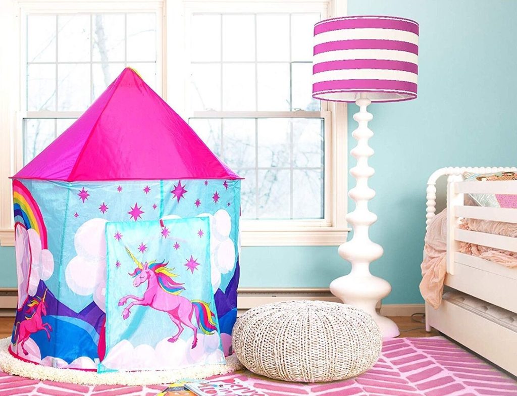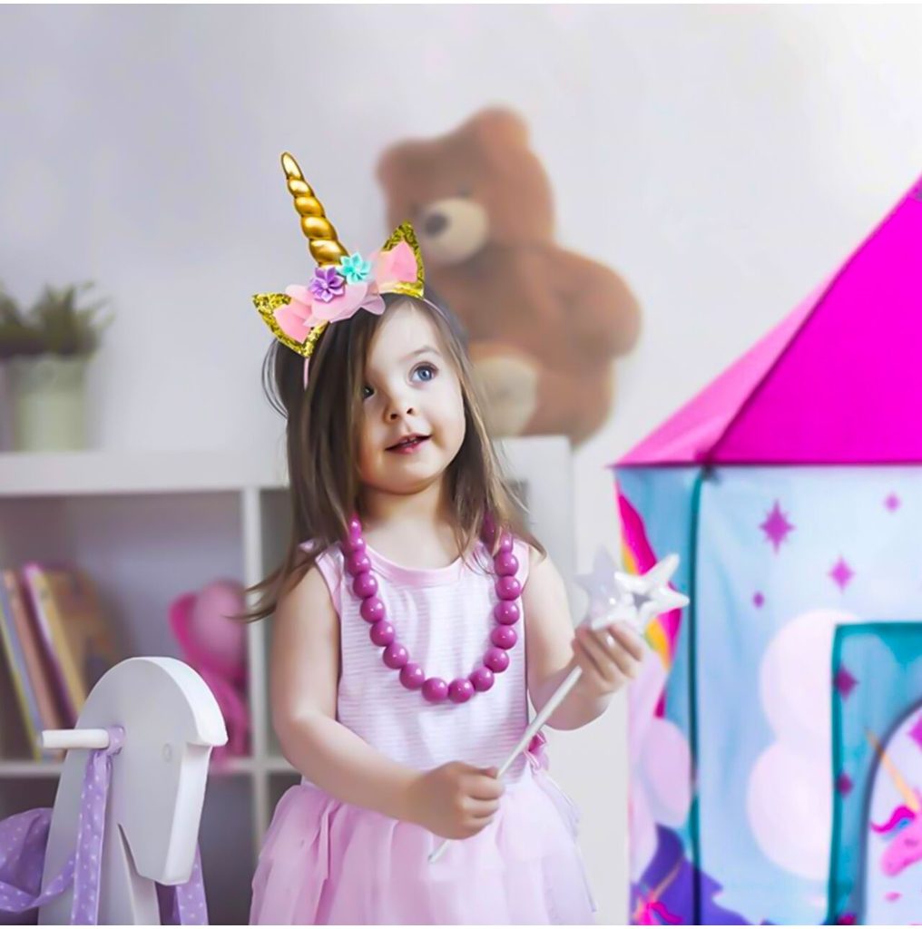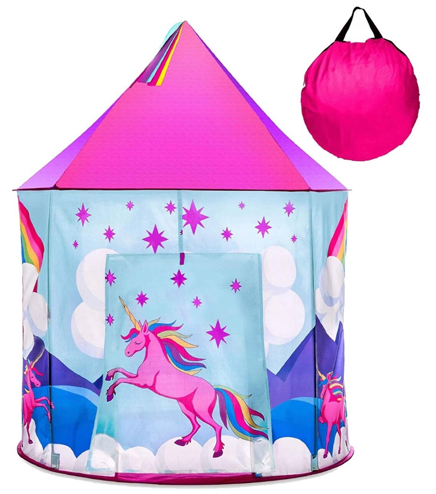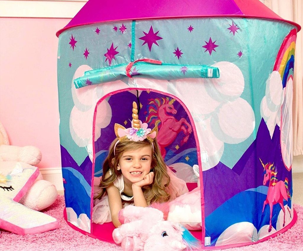 Dětský stan Unicorn Tent je ideálním místem na hraní pro každou holčičku. Je vhodný jak do vnitřních prostor tak i pro venkovní použití. Vchod do stanu je nastavitelný, můžete tak nastavit množství světla, které bude pronikat dovnitř stanu. Svrchní materiál je polyester s obrázkem jednorožce. Montáž stanu je velmi a snadná a rychlá, což oceníte zejména při jeho přemist'ování.