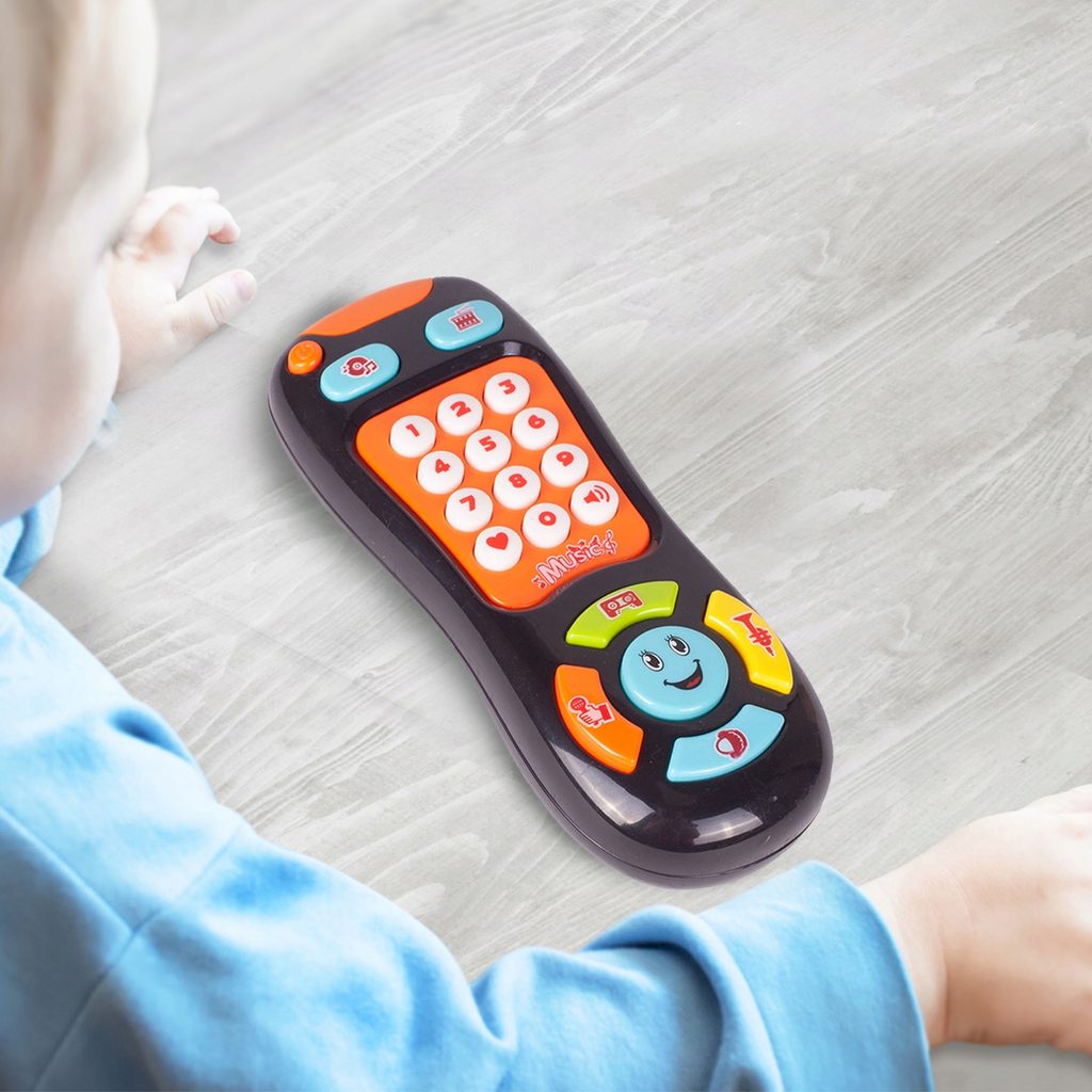 Interaktivní televizní ovladač Kids Controller je určen pro děti od 18 měsíců věku. Ovladač má zábavný vzhled a zvukové efekty. Tlačítka spouštějí melodie a různé zvuky. Napodobuje tak skutečný ovladač. Používání této hračky Vaším dítětem pozitivně ovlivní jeho smyslový vývoj, podpoří motoriku, kognitivní schopnosti a koordinaci oko - ruka.
