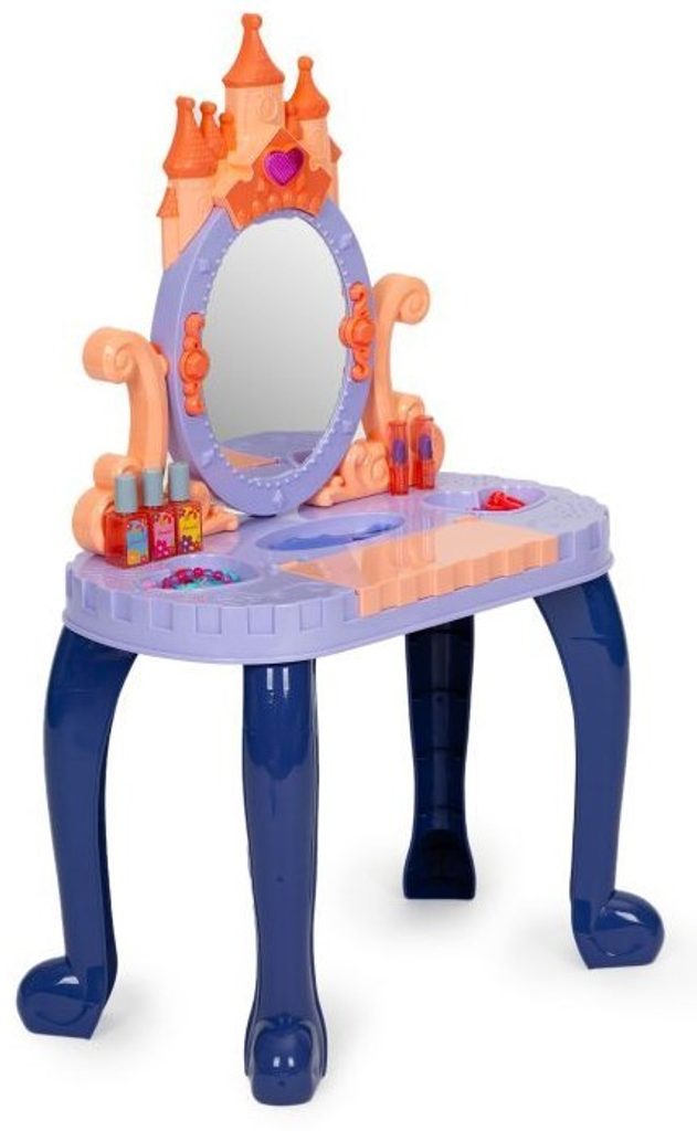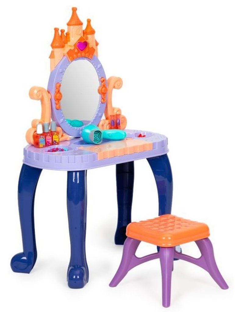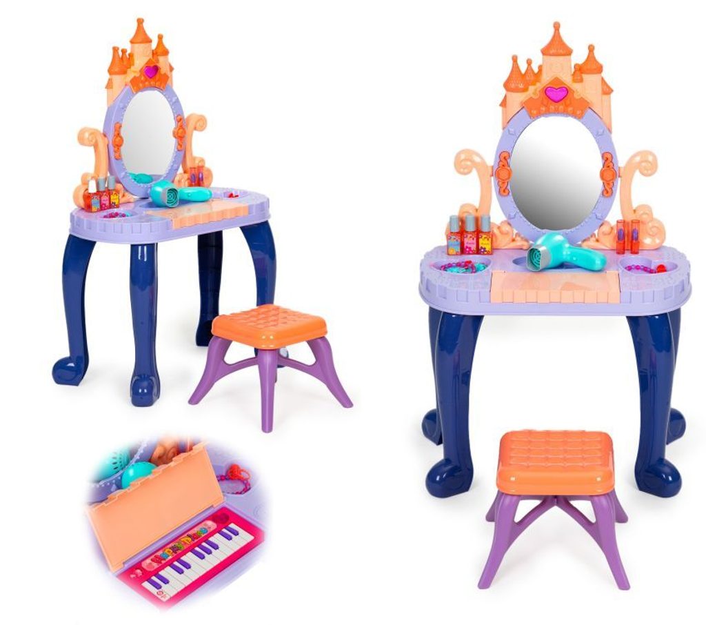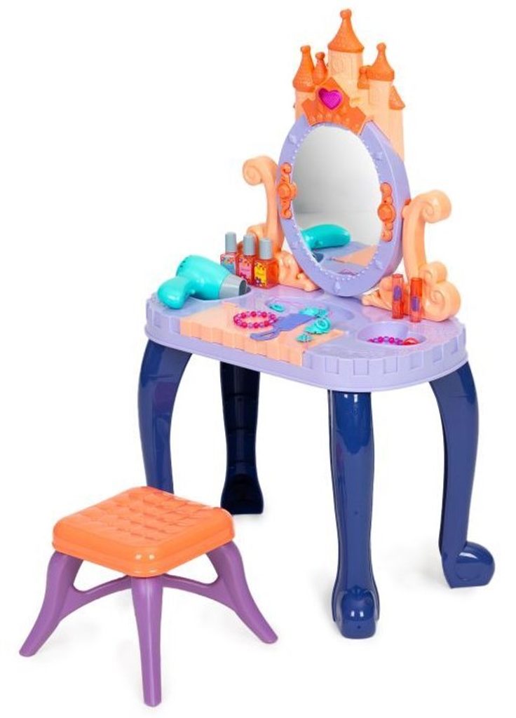 Toaletní stoleček Funny Dresser musí být součástí pokojíčku každé malé princezny. Je vybaven spoustou důležitých věcí pro každou malou parádnici. Set obsahuje imitace kosmetiky, hřeben, fén na baterii a další příslušenství. Ve stolku je také zabudovaný klavír. Fén na baterie fouká vzduch jako by byl skutečný. Hračka je určena pro děti od 36 měsíců věku.
