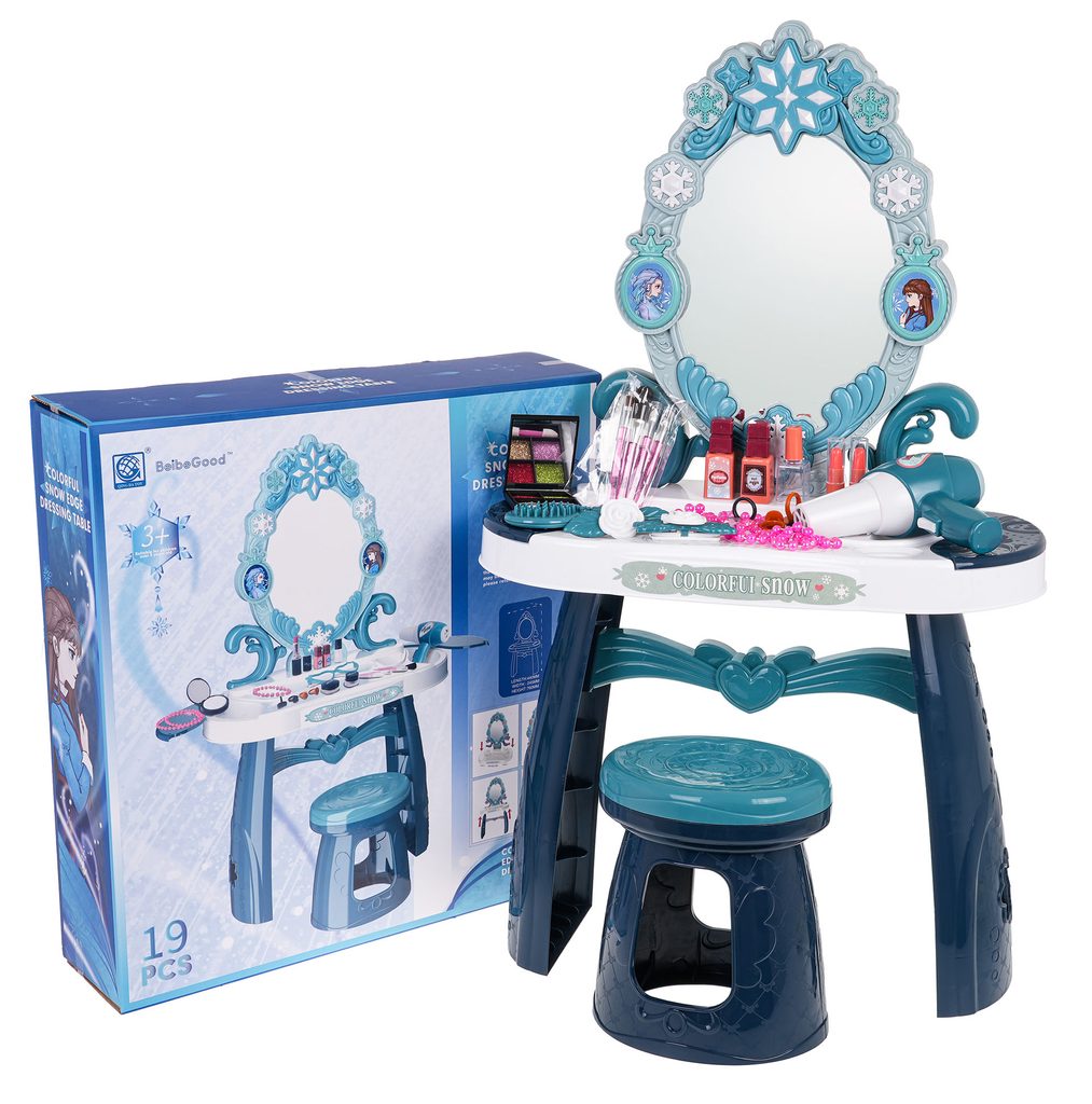 Toaletní stoleček Snow Edge musí být součástí pokojíčku každé malé princezny. Je vybaven spoustou důležitých věcí pro každou malou parádnici. Set obsahuje imitace kosmetiky, hřeben, kartáč na vlasy a další příslušenství. Ve stolku jsou také dvě boční poličky na drobnosti. Pro ještě větší zábavu má stoleček světelné efekty a zvukové efekty. Také fén vydává zvuky. Hračka je určena pro děti od 36 měsíců věku.
