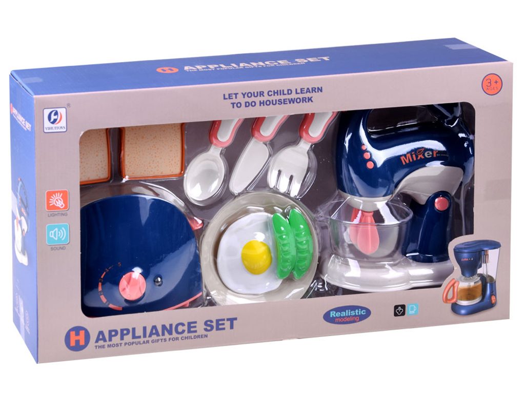 Dětský set toustovače s mixérem Blender Kitchen Set umožní Vašemu dítěti připravit občerstvení pro své oblíbené panenky nebo pro rodiče. Mixér i toustovač jsou vybaveny světelnými a zvukovými efekty. V sadě dále najdete kompletní příbor, talířek, toust a imitaci volího oka a hrášku. Hračka je určena pro děti od 36 měsíců věku.