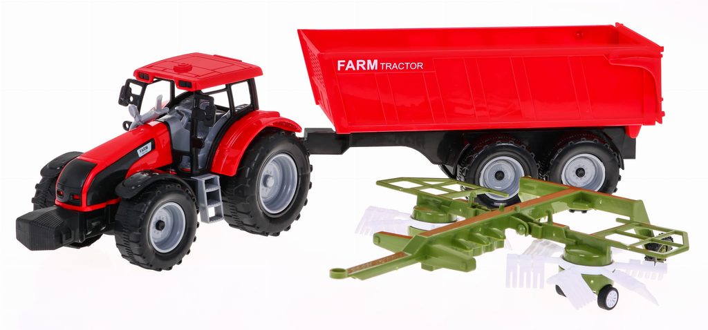 Dětský traktor s přívěsem Farmers Tale ideální hračkou pro rozvoj manuální zručnosti a logického myšlení. Součástí sestavy je traktor se zadním pohonem, návěs který lze ručně zvedat a vyklápět a také speciální stroj na obracení sena. Zábava malého farmáře je tak nekonečná. Hračka je určena pro děti od 36 měsíců věku.