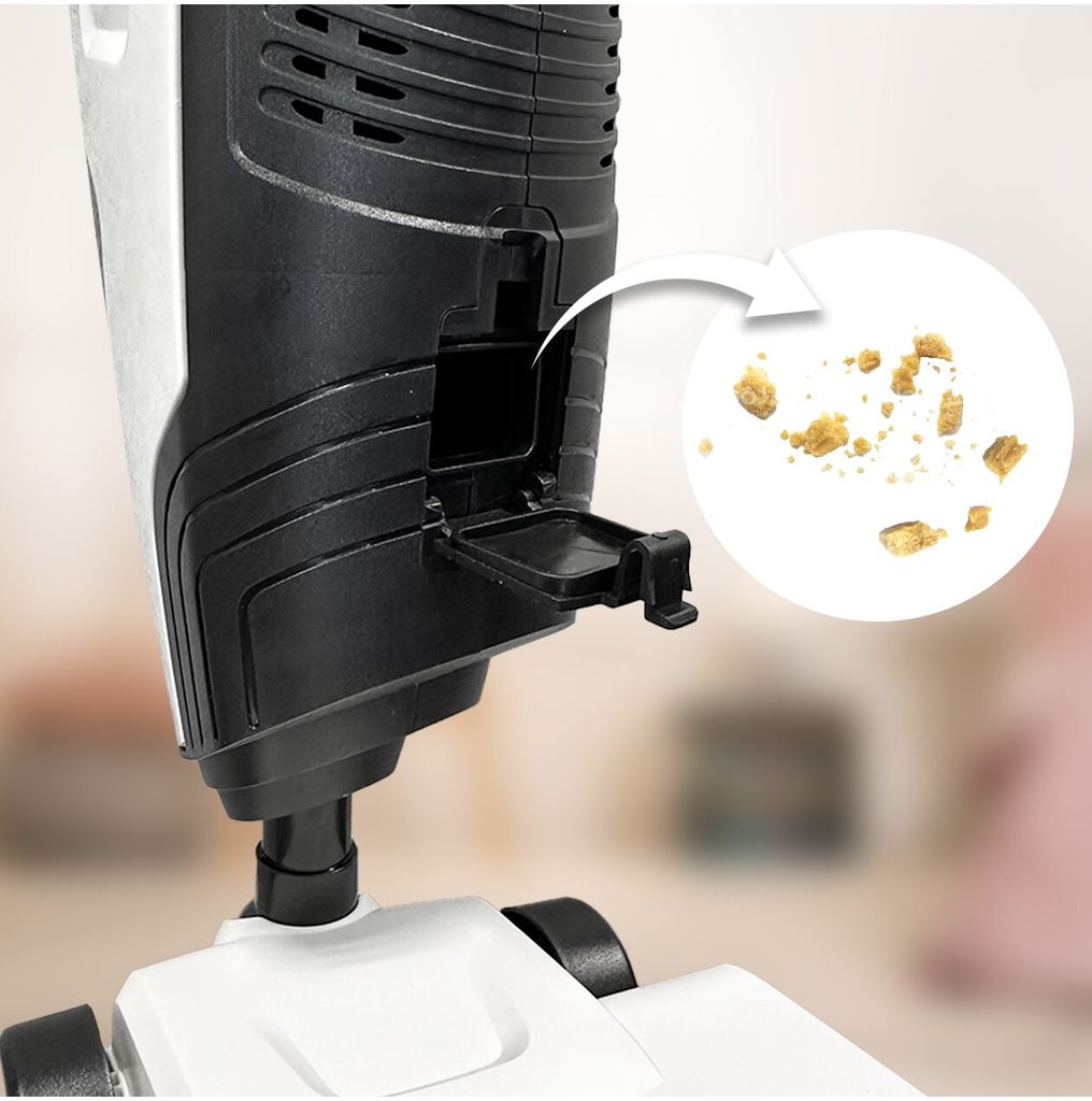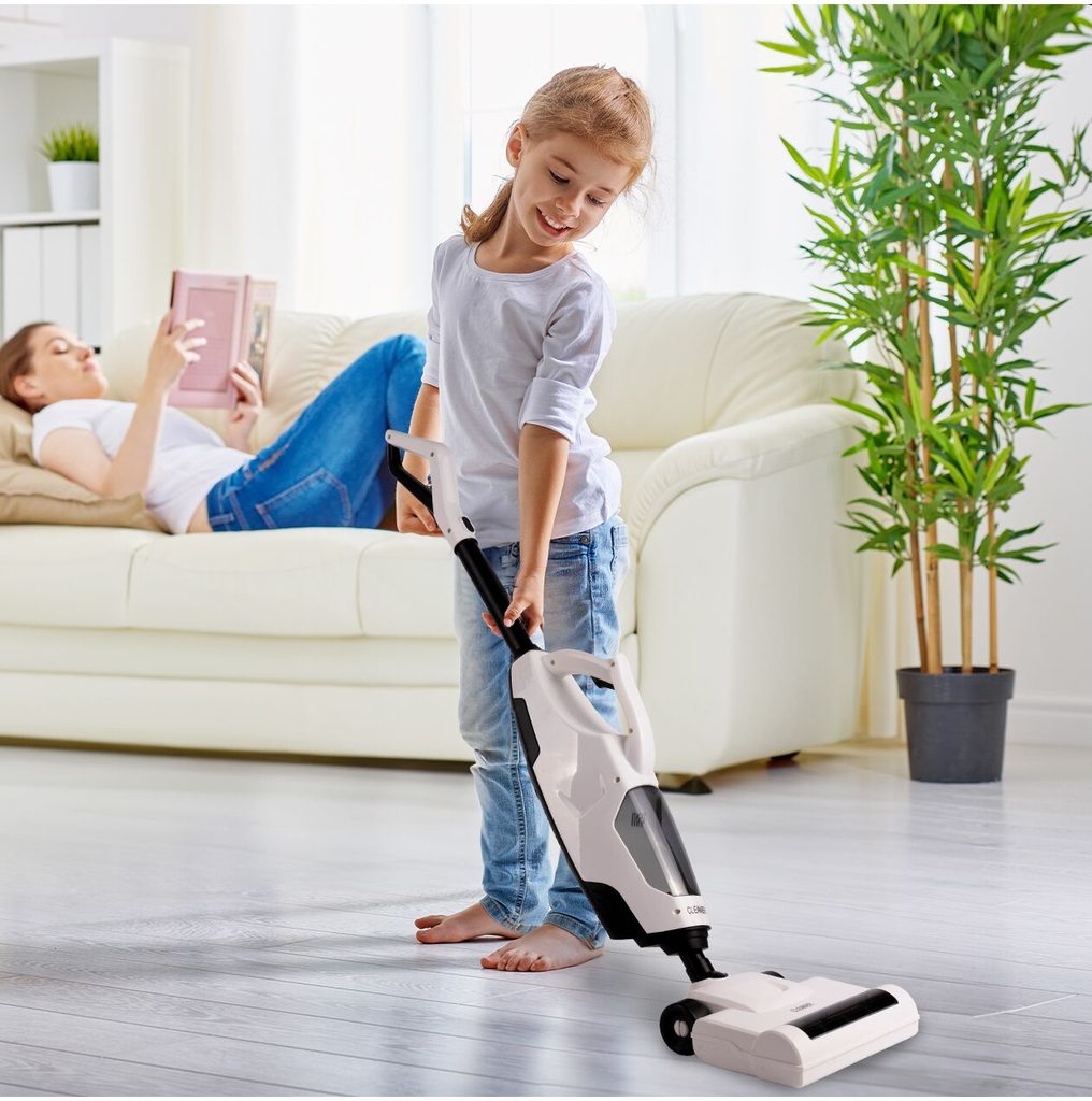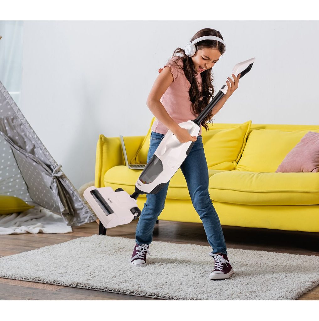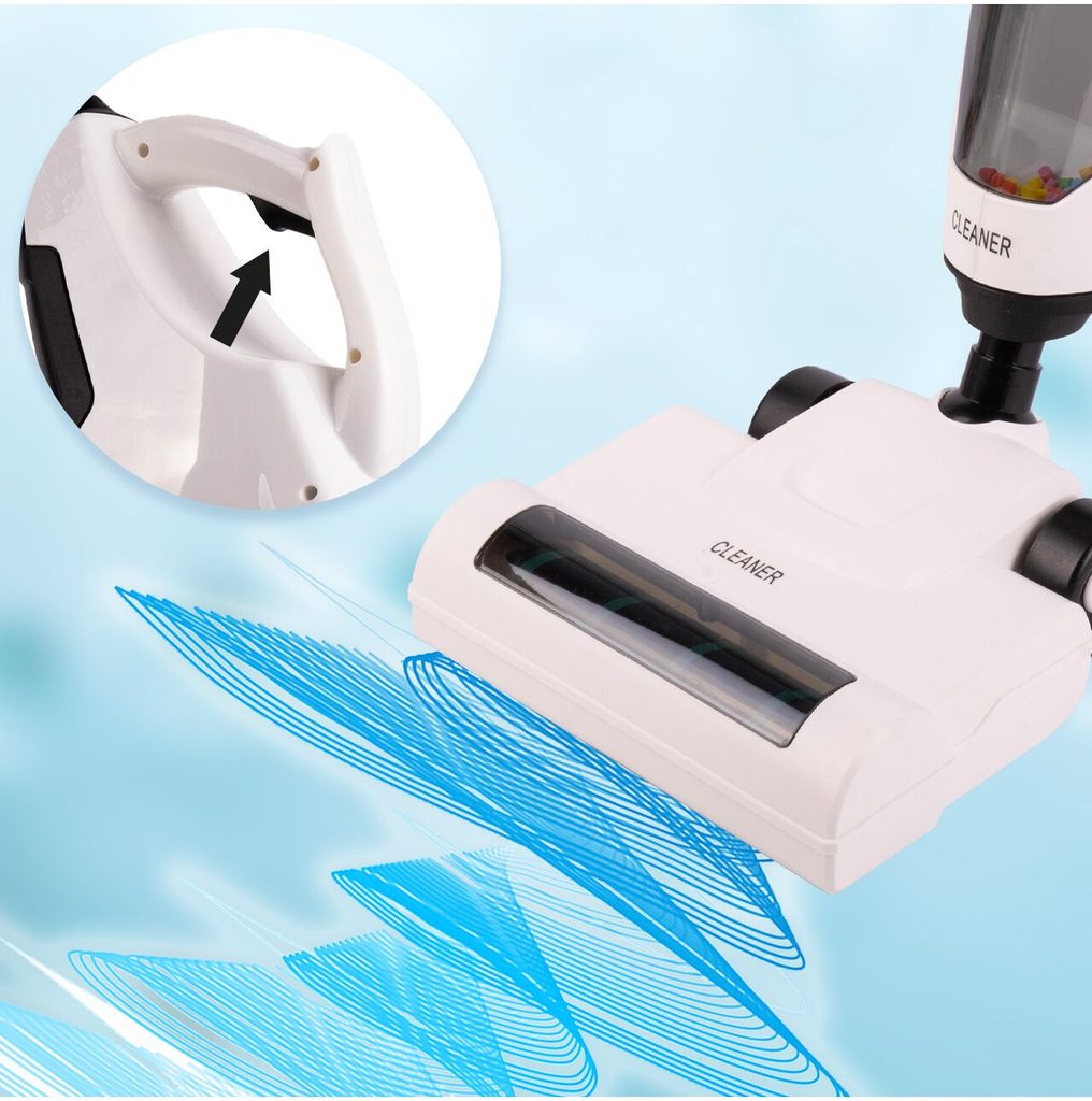 Dětský tyčový vysavač 2v1 Wet&Dry přemění Vaše dítě v opravdovou paní nebo pána domu a naučí ho pečovat o čistotu. Sada obsahuje větší podlahový a mnší ruční vysavač. Má nádobu na nečistoty. Vysavač vydává zvuky jako skutečný. Vysavač je napájen bateriemi, které nejsou součástí balení. Hračka je určena pro děti od 36 měsíců věku.