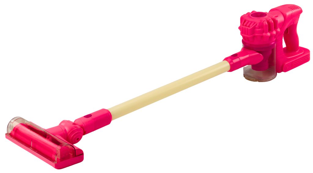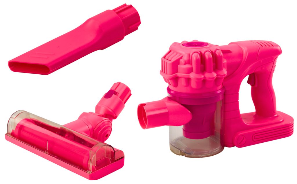 Dětský tyčový vysavač  přemění Vaše dítě v opravdovou paní nebo pána domu a naučí ho pečovat o čistotu. Nádoba na nečistoty je vybavena otevíráním. Vysavač vydává zvuky jako skutečný. V sadě jsou dvě koncovky kdy pomocí krátké můžete vysavač využít jako ruční nebo pomocí dlouhého nástavce lze vysávat podlaha. Vysavač je napájen bateriemi, které nejsou součástí balení. Hračka je určena pro děti od 36 měsíců věku.