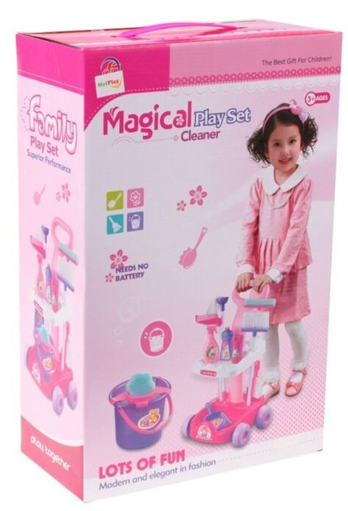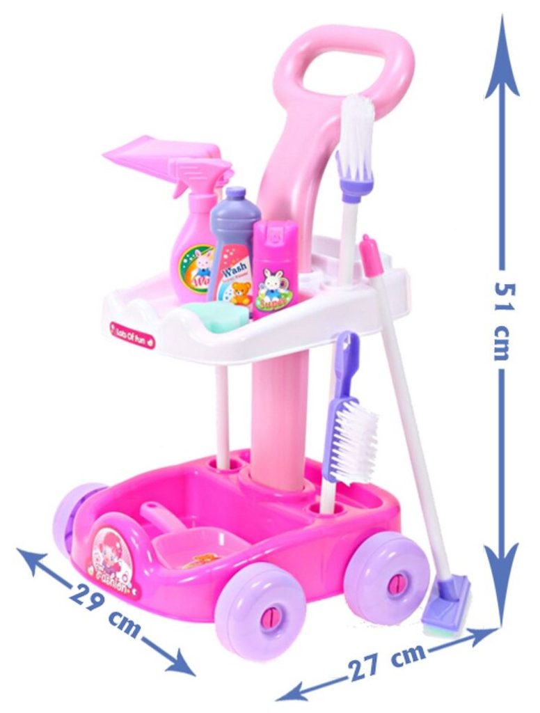 Kompletně vybavený dětský úklidový vozíček Beautiful Cleaner přemění Vaše dítě v opravdovou paní domu. Je vybaven dvěma policemi, velkým a malým smetákem, mopem, houbičkou na okna, imitacemi čistících prostředků a dalšími nezbytnými věcmi pro úklid. Hračka je určena pro děti od 36 měsíců věku.