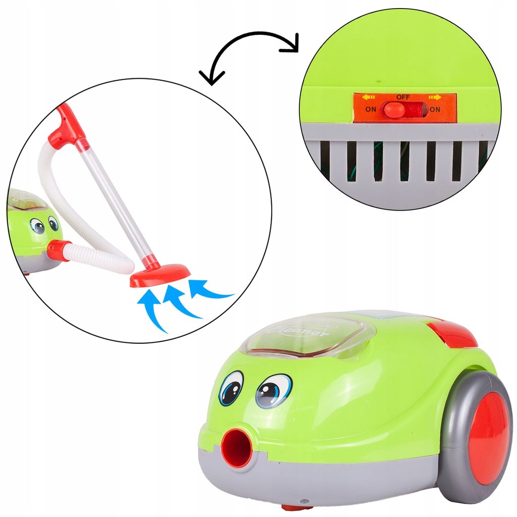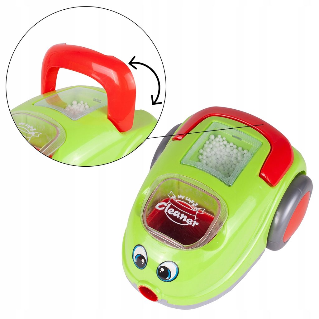 Dětský vysavač Little Cleaner přemění Vaše dítě v opravdovou paní nebo pána domu a naučí ho pečovat o čistotu. Je vybavený podsvíceným vypínačem. Vysavač má ohebnou hadici, vysávací trubku a uvnitř je vyjímatelná nádoba na nečistoty. Součástí balení jsou také polystyrenové kuličky, které imitují skutečné smetí. Pro snadný přenos je v horní části umístěna rukojeť. Po celou dobu vysávání svítí různobarevné světla. Vysavač je napájen bateriemi, které nejsou součástí balení. Hračka je určena pro děti od 36 měsíců věku.
