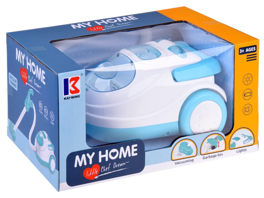 Dětský vysavač My Home přemění Vaše dítě v opravdovou paní nebo pána domu a naučí ho pečovat o čistotu. Vysavač má ohebnou hadici, vysávací trubku a uvnitř je vyjímatelná nádoba na nečistoty. Součástí balení jsou také polystyrenové kuličky, které imitují skutečné smetí. Pro snadný přenos je v horní části umístěna rukojeť. Vysavač má ve vybavení také podsvětlení. Je napájen bateriemi, které nejsou součástí balení. Hračka je určena pro děti od 36 měsíců věku.