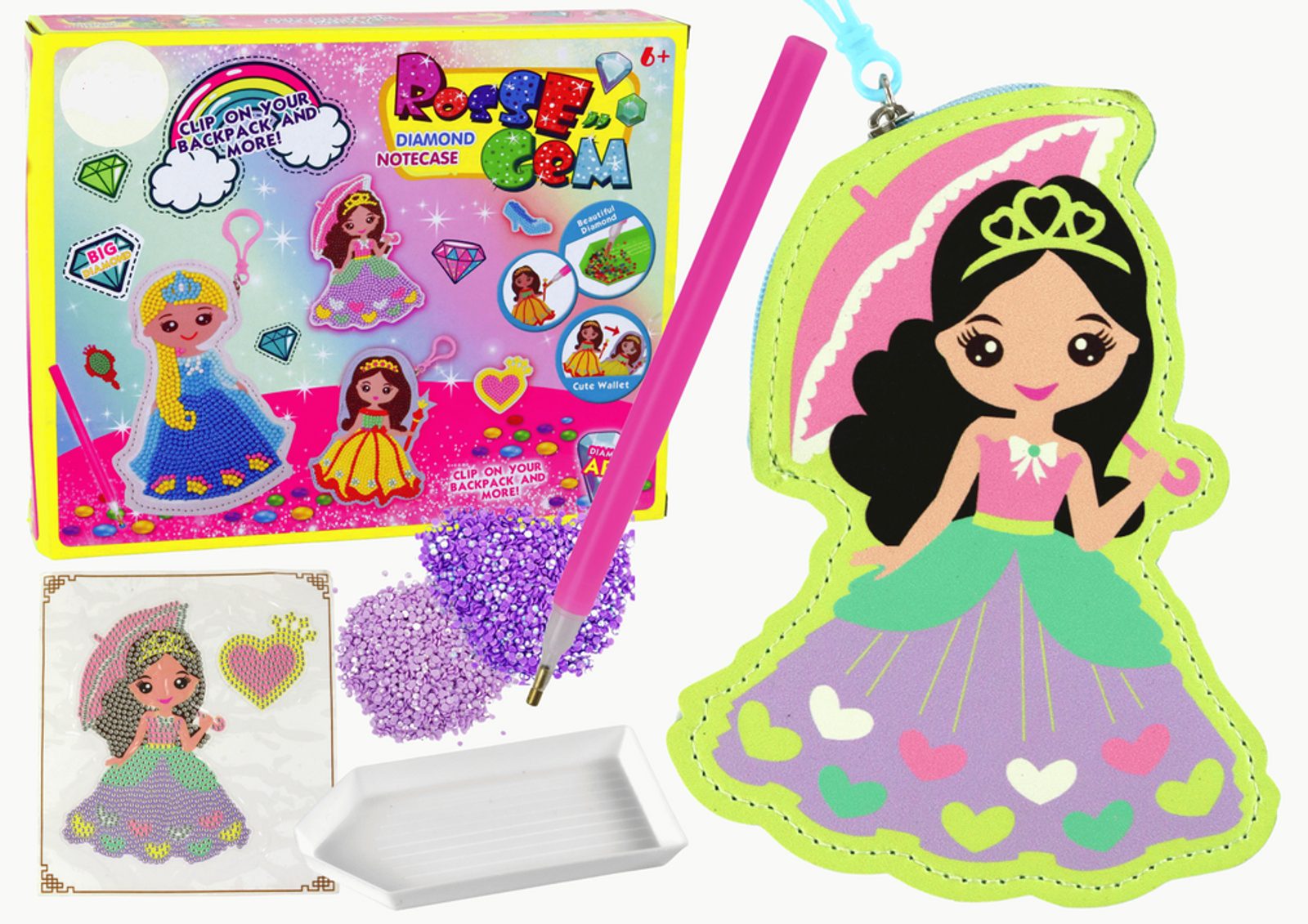 Diamantová mozaika Rose Gem učí dětí představivost, podporuje kreativitu a manuální dovednosti. Sada obsahuje celkem 1000 ks brokátových "diamantů" v 7 barevných odstínech a kompletní příslušenství pro práci s nimi. Princip hry je v ukládání diamantů do předem připravených vzorů ve formě nálepek. Hračka je určena pro děti od 3 let věku.