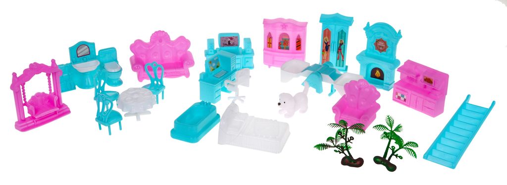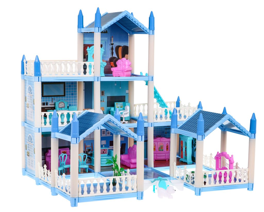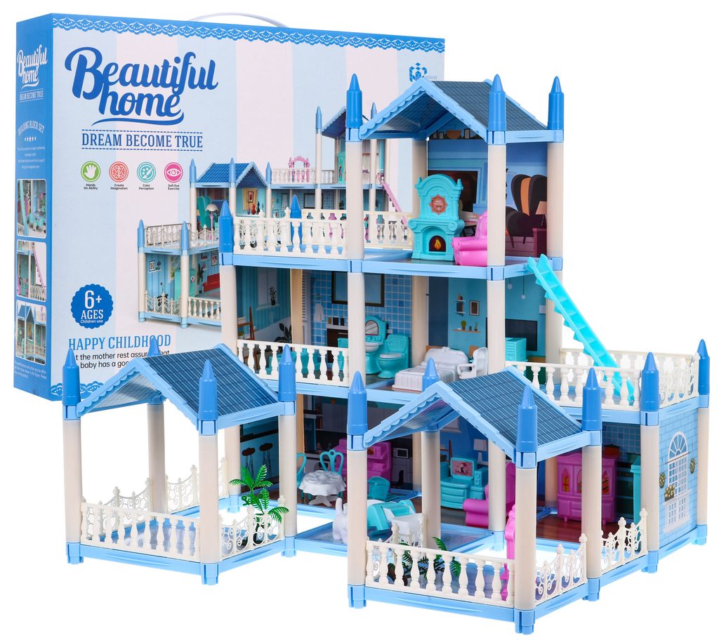 Nádherný domeček pro panenky s přízemím, prvním patrem a 2 balkóny je snem každé malé princezny. Skládá se z celkem 5 velkých pokojů, které jsou průchozí. Nábytek v domečku lze libovolně přeskupovat. Najdete zde skříně, gauč, postel, židle, vanu, kuchyň , koupelnu a mnoho dalšího vybavení. Součástí jsou také 2 pejsci. Je vhodný pro děti od 6 let věku.