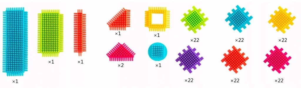 Doris sada konstrukčních plastových dílků Hedgehog Blocks. Celkem je zde obsaženo 140 ks různých konstrukčních prvků, které lze libovolně kombinovat a spojovat. Vše záleží jen na jeho představivosti. Dítě může sestrojit autíčko, robota, loď, letadlo a mnoho dalších tvarů. Všechny kostky mají zaoblené hrany, pokryty bezpečnou barvou pro děti a jsou vyrobeny z kvalitního plastu. Hra s nimi podporuje u dětí představivost a motoriku. Hračka je určena pro děti od 36 měsíců věku.