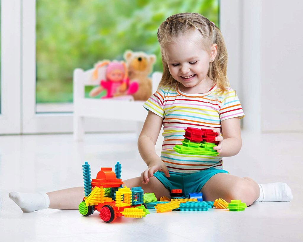 Doris sada konstrukčních plastových kostek v praktickém pytlíku. Celkem je zde obsaženo 90 ks různých konstrukčních prvků, které lze libovolně kombinovat a spojovat. Vše záleží jen na jeho představivosti. Všechny kostky mají zaoblené hrany, pokryty bezpečnou barvou pro děti a jsou vyrobeny z kvalitního plastu. Hra s nimi podporuje u dětí představivost a motoriku. Hračka je určena pro děti od 36 měsíců věku.