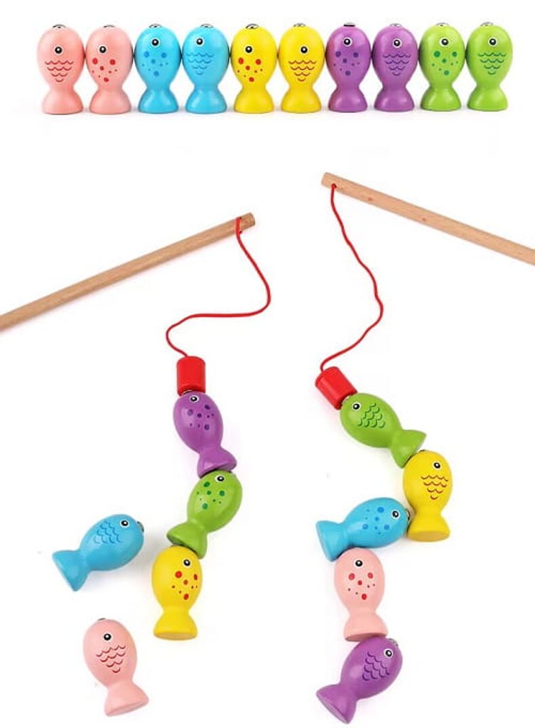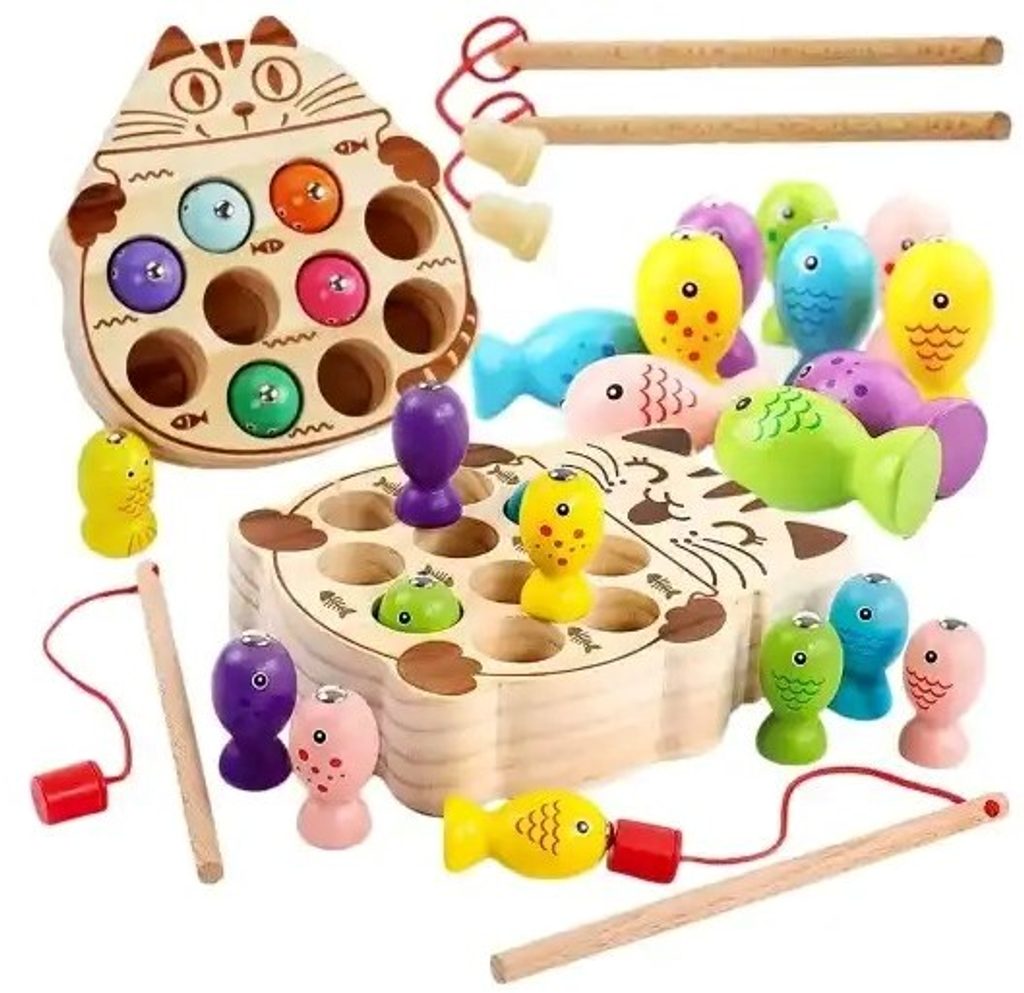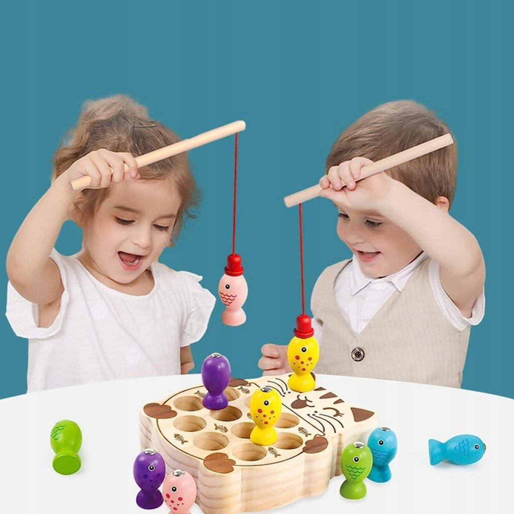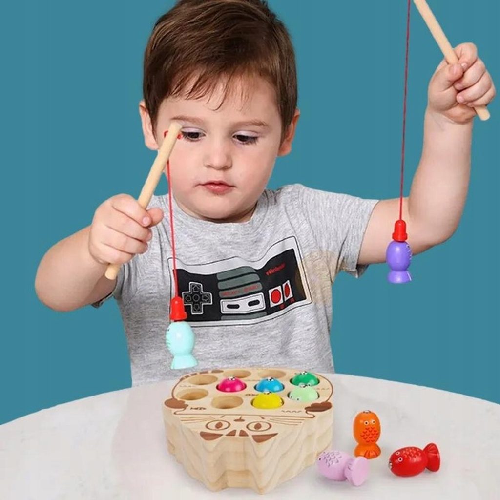 Dětská hra Lovení rybiček Cat Fishing s magnetem učí dětí koordinaci a podporuje kreativitu. Pomocí dvou přiložených prutů lze lovit dřevěné rybičky a ukládat je druhou část hry v provedení kočičky. Vše je vyrobeno ze dřeva bez ostrých hran. Hračka je určena pro děti od 36 měsíců věku.