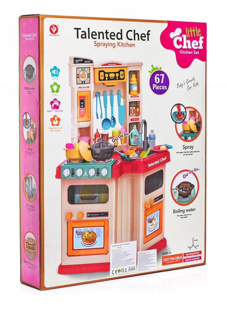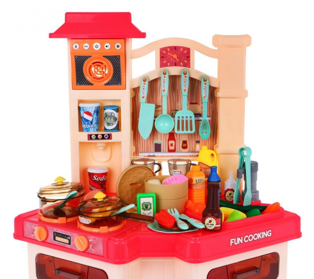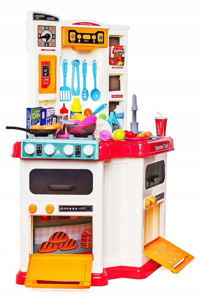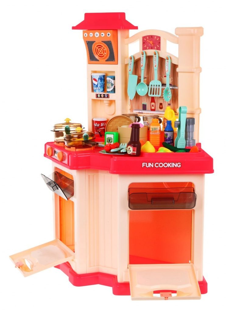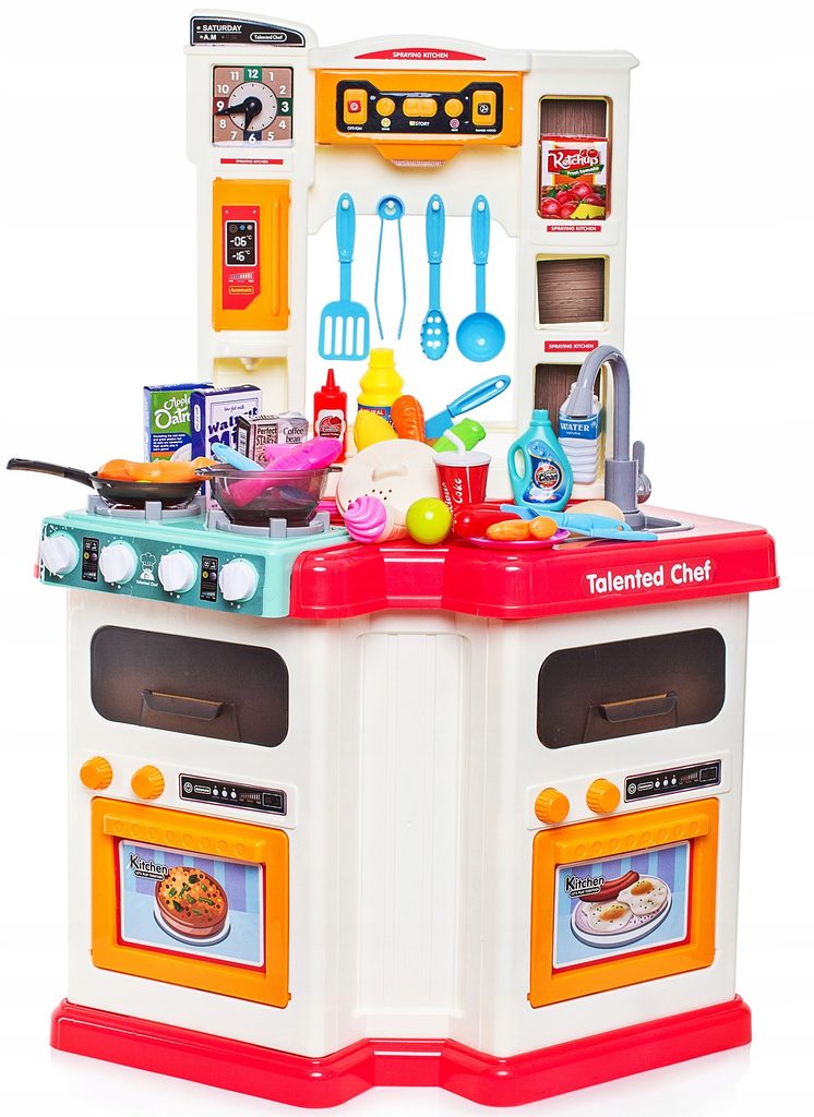 Interaktivní dětská kuchyňka Doris Talented Chef se zvuky a světlem a tekoucí vodou je určena pro děti od 36 měsíců věku. Je vybavena celkem 67 elementy jako jsou příbory, pánev, salátová misky, hotová jídla, talíře, imitace potravin a mnoho dalších. Jeden hořák způsobuje po nalití malého množství vody efekt studené páry takže vaření bude opravdu jako skutečné. V přední části je umístěna digestoř, která vydává charakteristický zvuk a má panel ze kterého lze ovládat zvuky a světelné efekty. Po nalití vody do dřezu a zmáčknutí speciálního tlačítka začne téct voda a děti mohou mýt nádobí jako v reálné kuchyni. Vaše dítě se určitě s touto velkou kuchyňkou nudit nebude. Trouba a lednice jsou otevírací. Hodiny s posuvnými ručičkami pomůžou hlídat čas vaření. velkou výhodou je rohové provedení kuchyňky, kdy si může hrát více dětí najednou aniž by si překáželi. Je vyrobena z kvalitního plastu v pestrobarevném provedení.