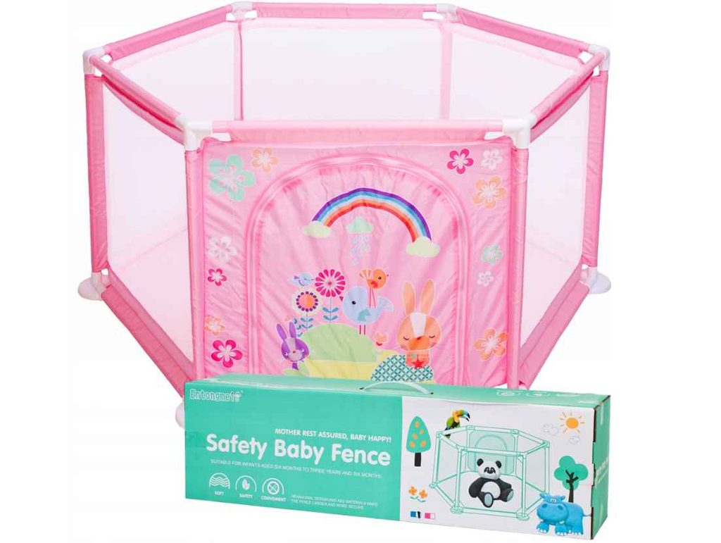 Bezpečná ohrádka Safety Fence je určenapro miminka od 6 měsíců. Poskytuje prostor pro pohyb bez rizika zranění či pádu. Je vyrobená z bezpečných materiálů bez ostrých či malých prvků, snadno čistitelná. Stabilní rám zajišťuje pevnost a odolnost. Pohodlně přenositelná z místnosti do místnosti nebo ven na zahradu, aby dítě bylo v bezpečí i během každodenních aktivit rodičů. Ohrádka má stěny vyrobené ze síťoviny, umožňující pozorování miminka při hře. Jedna stěna je vybavena zipem pro snadný vstup a výstup.