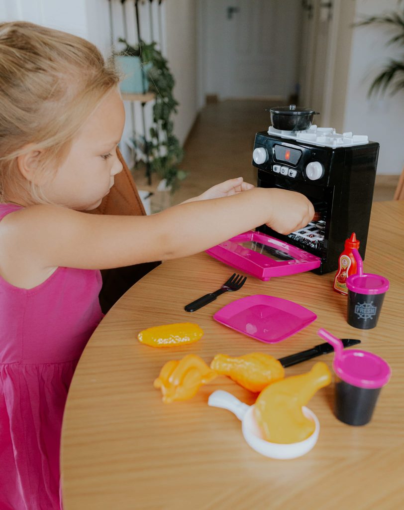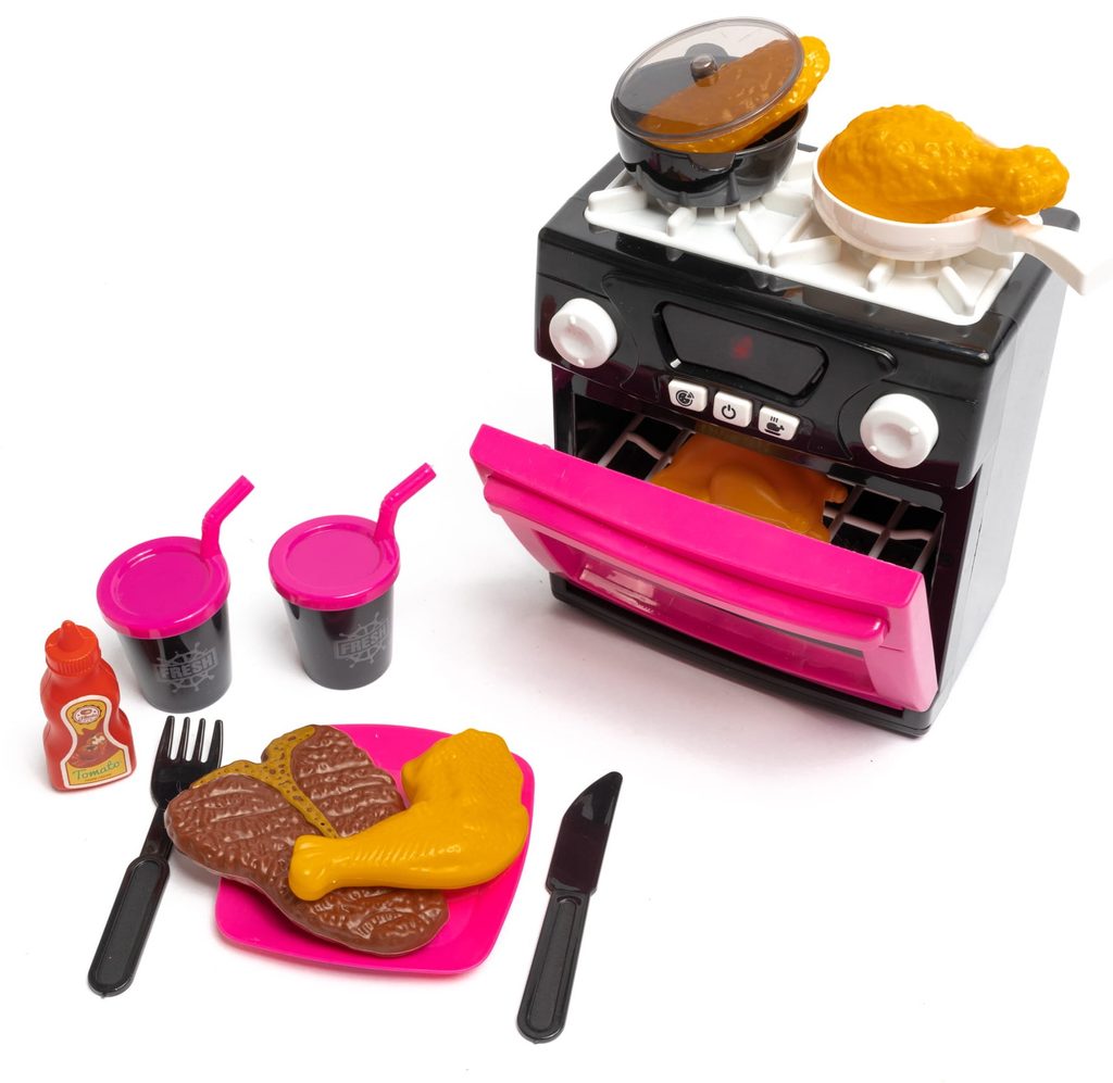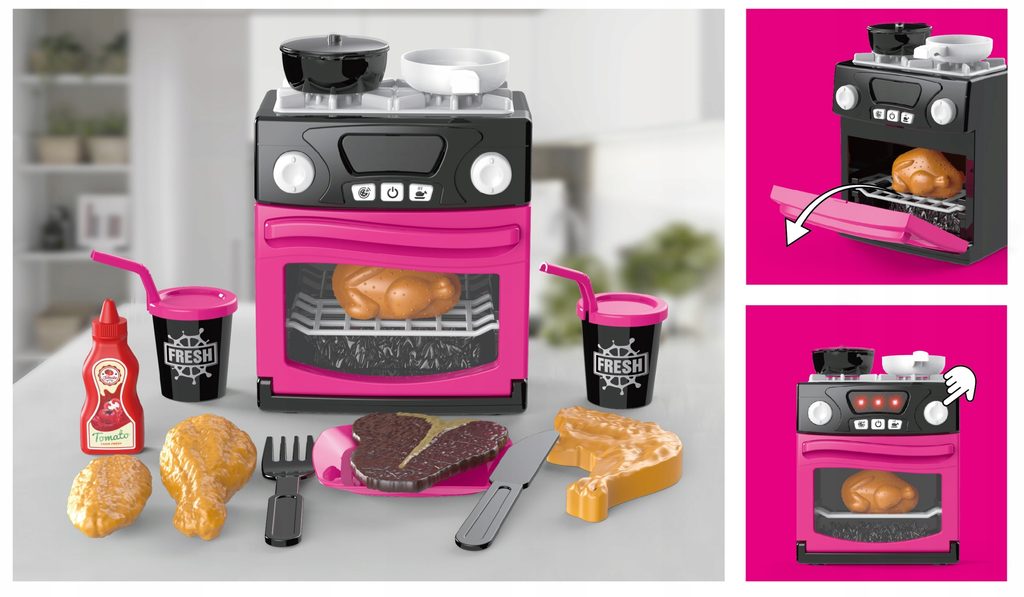Dětská trouba se sporákem MyLittle Home umožní Vašemu dítěti "ohřát" jakékoliv jídlo jako ve skutečné kuchyni. Součástí sady jsou kromě samotné trouby také pánev s poklicí, talířek s příbory, kelímky a imitace potravin. Tlačítka v přední části spouštějí různé světelné a zvukové efekty. Hračka je určena pro děti od 36 měsíců věku.