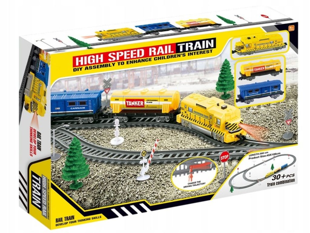 Doris vláčkodráha High Speed Train s lokomotivou na baterie učí dětí představivost a podporuje kreativitu. Vláčkodráha se skládá z mnoha součástí. Naleznete zde lokomotivu, která svítí, vagóny, závory, dopravní značky, stromečky a koleje. Vše je vyrobeno z plastu bez ostrých hran. Hračka je určena pro děti od 36 měsíců věku.