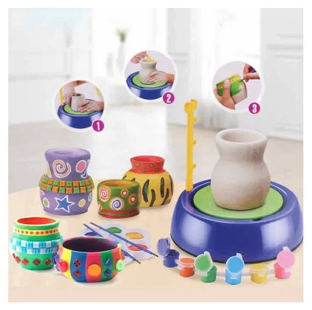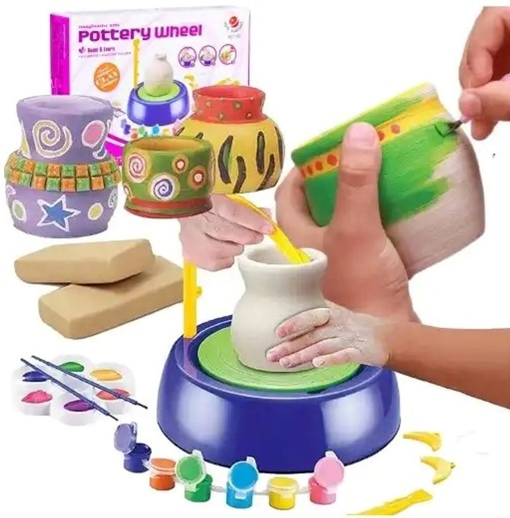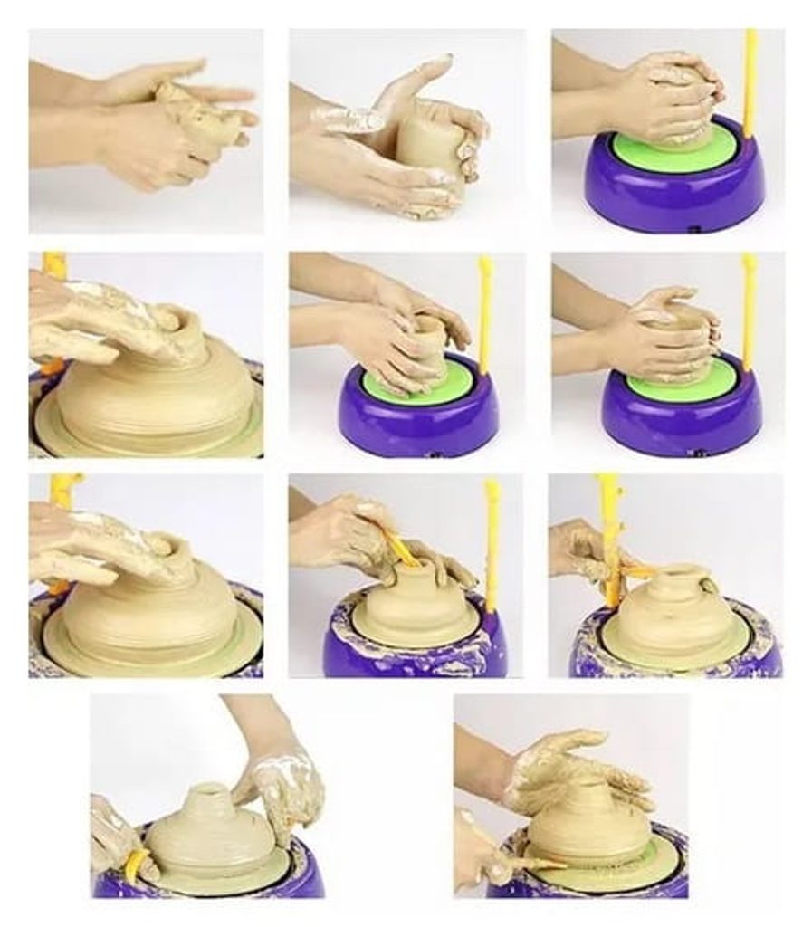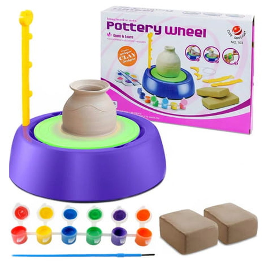 Dětský hrnčířský kruh Pottery Wheel na baterie je skvělá edukační hračka pro děti s doporučeným věkem od 8 let. Rychlost otáčení kruhu lze nastavit na rychlejší nebo pomalejší. Děti s jeho pomocí mohou vytvořit svá první keramická díla a poté si je mohou ozdobit barvičkami dle vlastních představ. Děti si tak hravou formou zlepšují své dovednosti a navíc mohou vytvářet dárky pro své blízké.