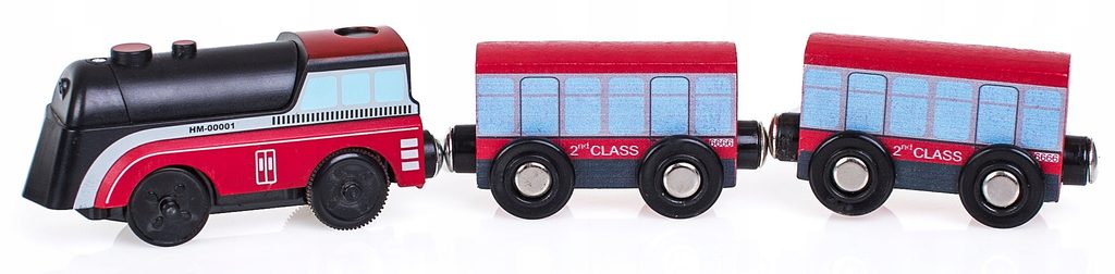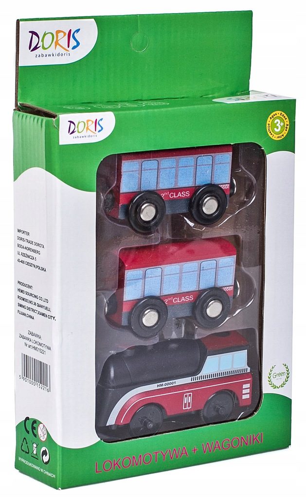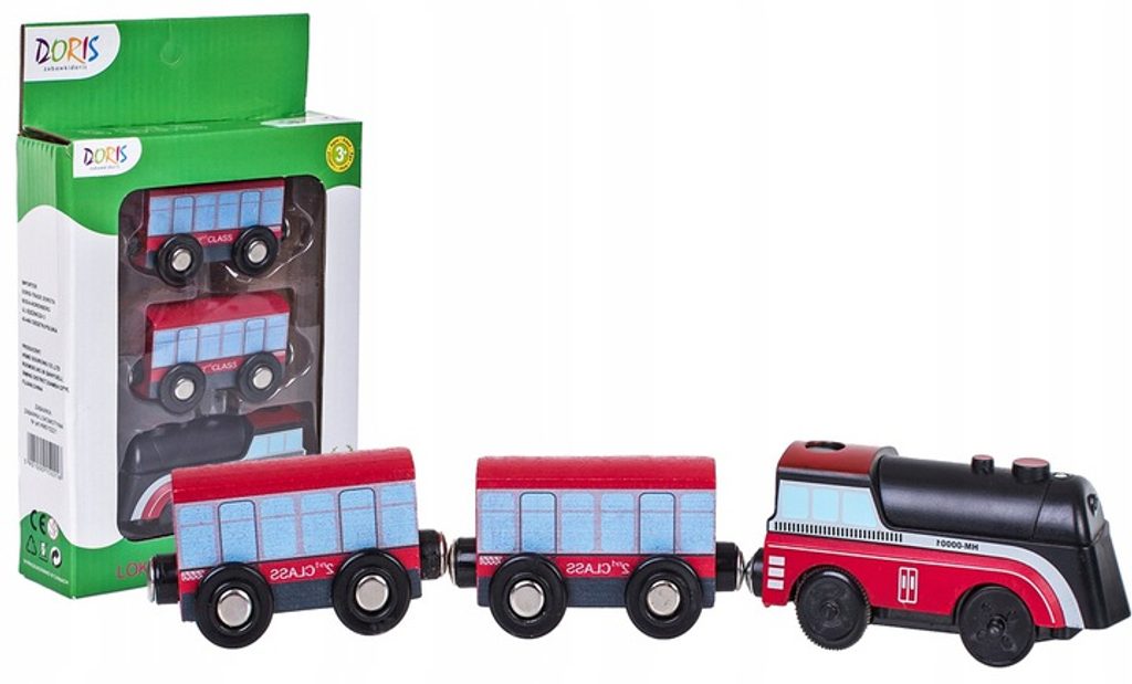 Doris dřevěný vláček s lokomotivou Happy Train učí dětí představivost a podporuje kreativitu a je skvělou zábavou pro kluky i holčičky. Lokomotiva je poháněná baterií a 2 vagonky se připojují pomocí magnetu. Vše je vyrobeno ze dřeva v pestrobarevném provedení bez ostrých hran. Hračka je určena pro děti od 36 měsíců věku. Vláček je kompatibilní se všemi vláčkodráhami Doris.