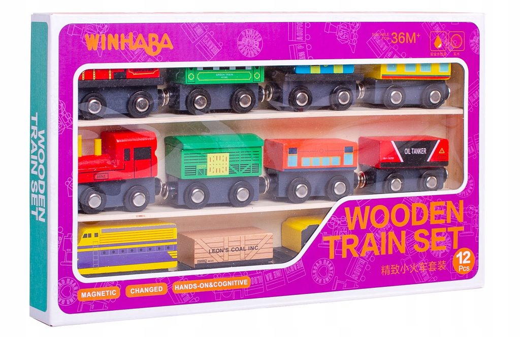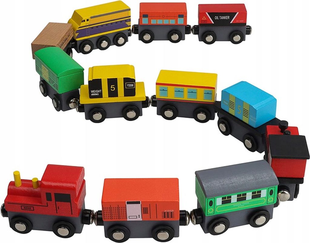 Doris dřevěný vláček se 3 lokomotivami Wooden Train učí dětí představivost a podporuje kreativitu a je skvělou zábavou pro kluky i holčičky. Lokomotiva a vagonky se připojují pomocí magnetu. Vše je vyrobeno ze dřeva v pestrobarevném provedení bez ostrých hran. Hračka je určena pro děti od 36 měsíců věku.