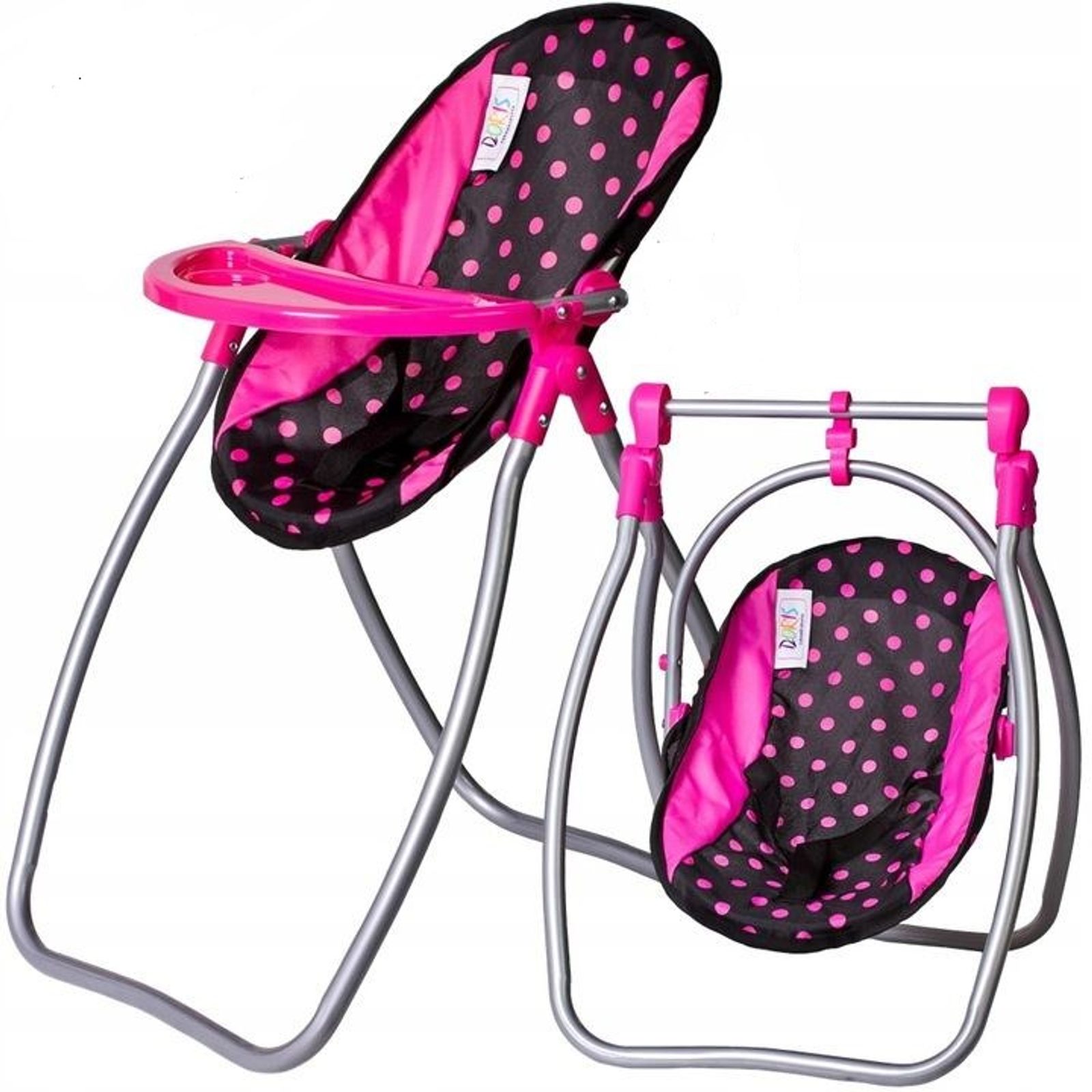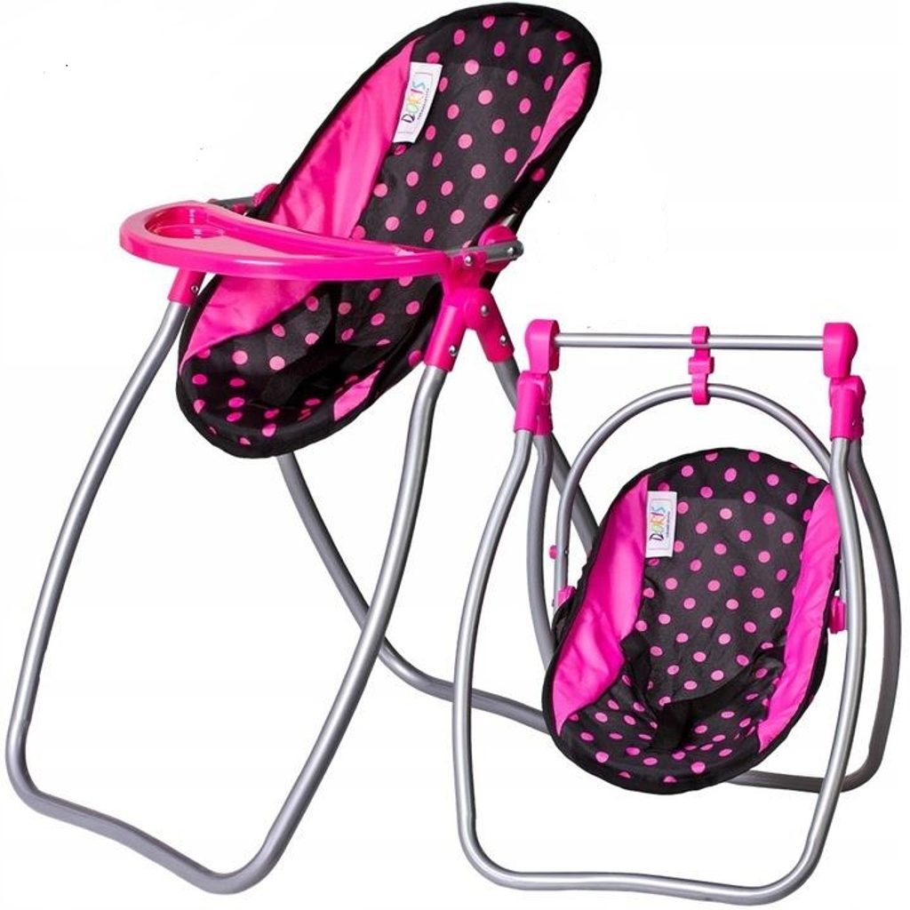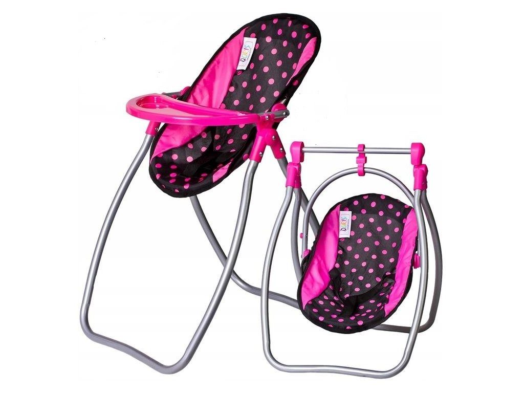 Doris jídelní židlička 2v1 pro panenku s houpačkou je ideálním doplňkem ke každému kočárku pro panenky. Lze ji jednoduchým způsobem přeměnit ze židličky s jídelním tácem na houpačku. Vyznačuje se nízkou hmotností kdy je konstrukce vyrobena z hliníkových trubek. Je určena pro panenky do velikosti 45 cm.