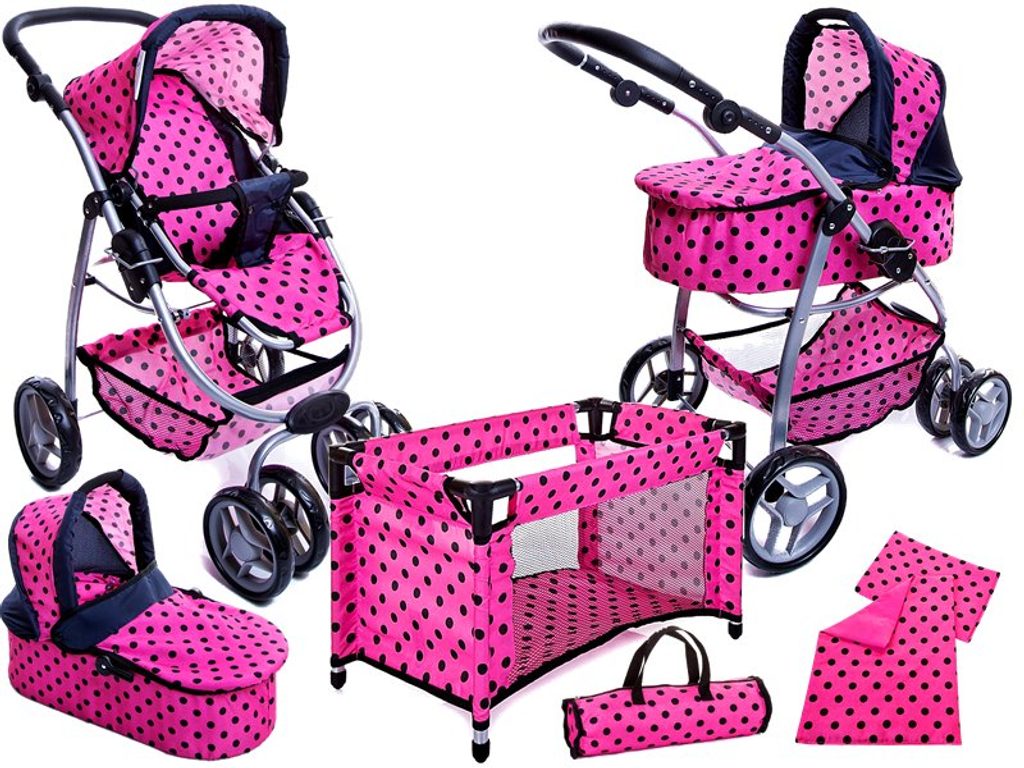 • obsahuje : sportovní kočárek pro panenku 3v1, cestovní postýlku, tašku na postýlku, peřinku z polštářkem