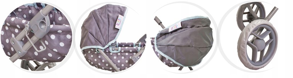Kočárek pro panenky Doris 9325 Retro má velmi lehkou stabilní konstrukci vyrobenou z hliníkových trubek, svrchní část je z impregnované bavlny. Stříška kočárku je skládací. Rukojeť kočárku je obalená pěnou. Před automatickým složením chrání dítě blokace. Pěnová kola s disky jsou tichá a nezanechávají šmouhy na podlaze. Součástí kočárku je praktická závěsná taška.