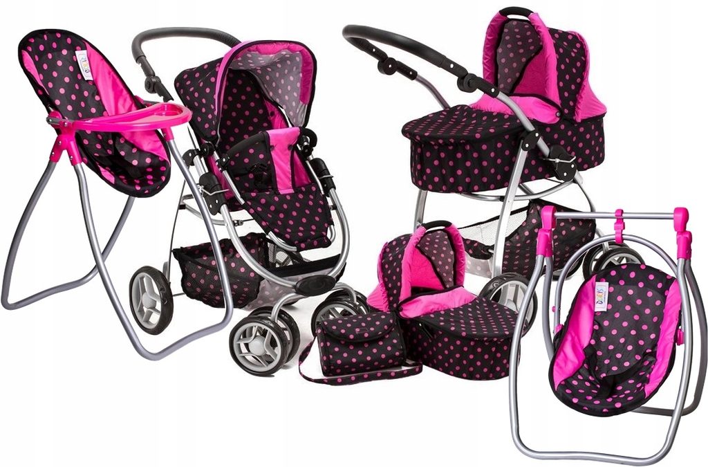Velký set Doris pro holčičky od 4 do 8 let. Kočárek má velmi lehkou stabilní konstrukci vyrobenou z hliníkových trubek, svrchní část je z impregnované bavlny. Lze ji jednoduše sejmout a kdykoliv vyprat. Rukojeť kočárku je nastavitelná a obalená pěnou. Uvnitř kočárku je korbička sloužící k snadnému přenášení panenky. Před automatickým složením chrání dítě blokace. Panenka je ve sportovní verzi proti vypadnutí zabezpečena bezpečnostním pásem. Jednoduchá změna z hluboké na sportovní verzi. Set dále obsahuje jídelní židličku 2v1 a peřinku s polštářkem. Vhodné pro panenku do 45 cm.