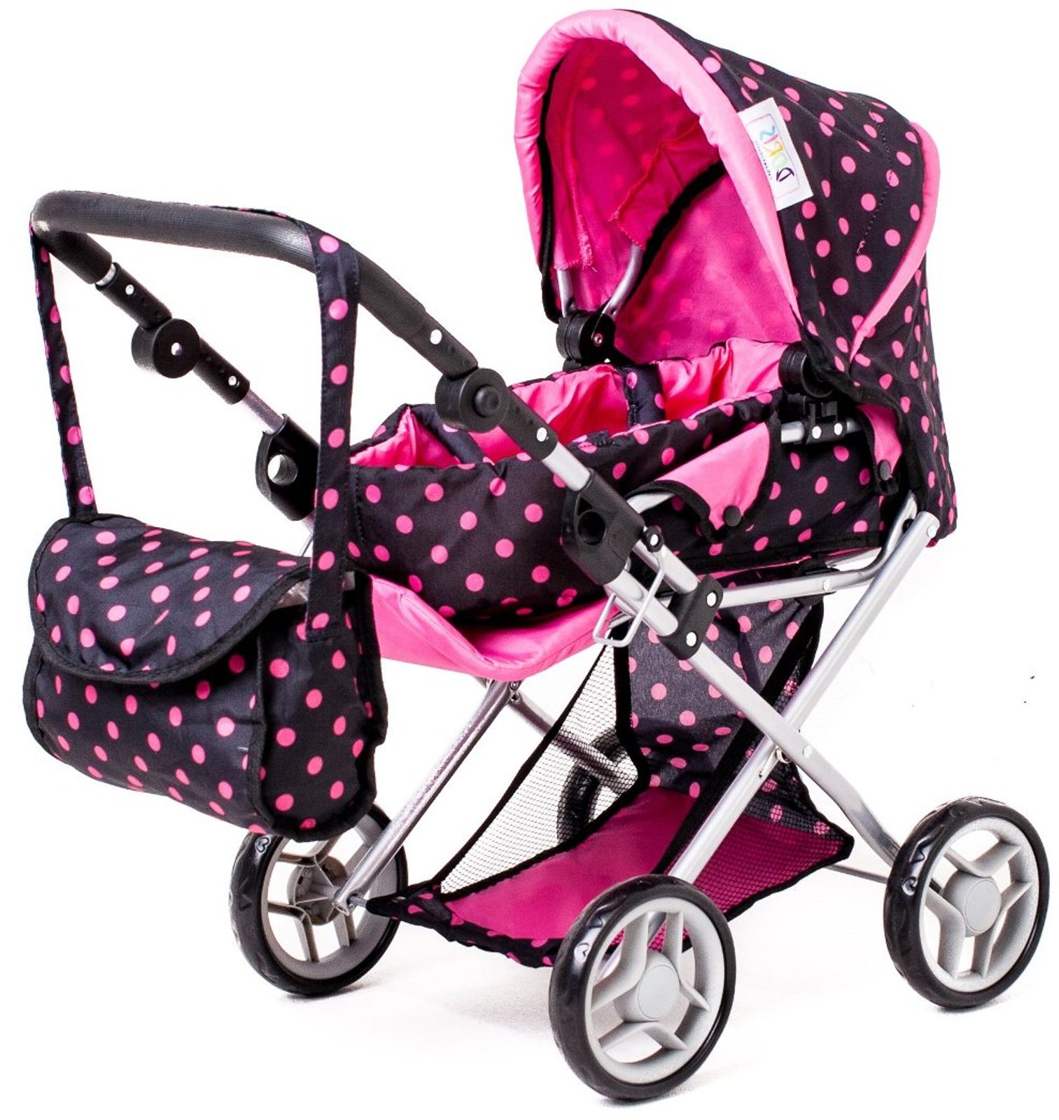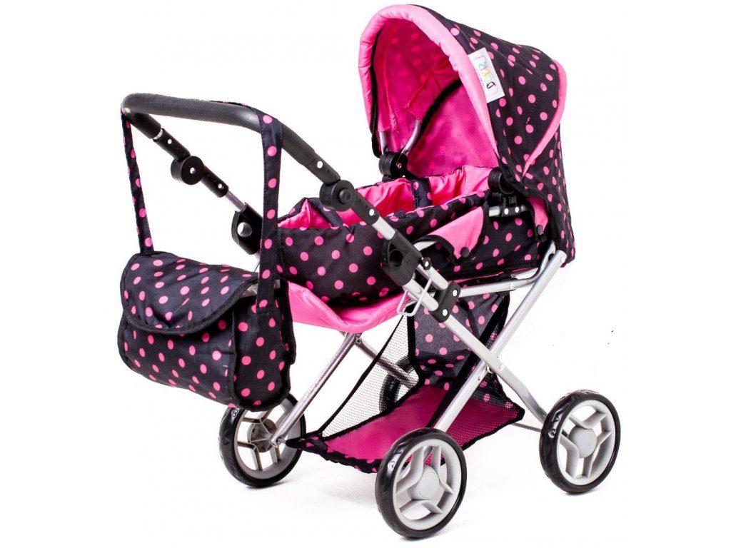 Doris kočárek pro panenky kombinovaný - 9346 černý s puntíkama