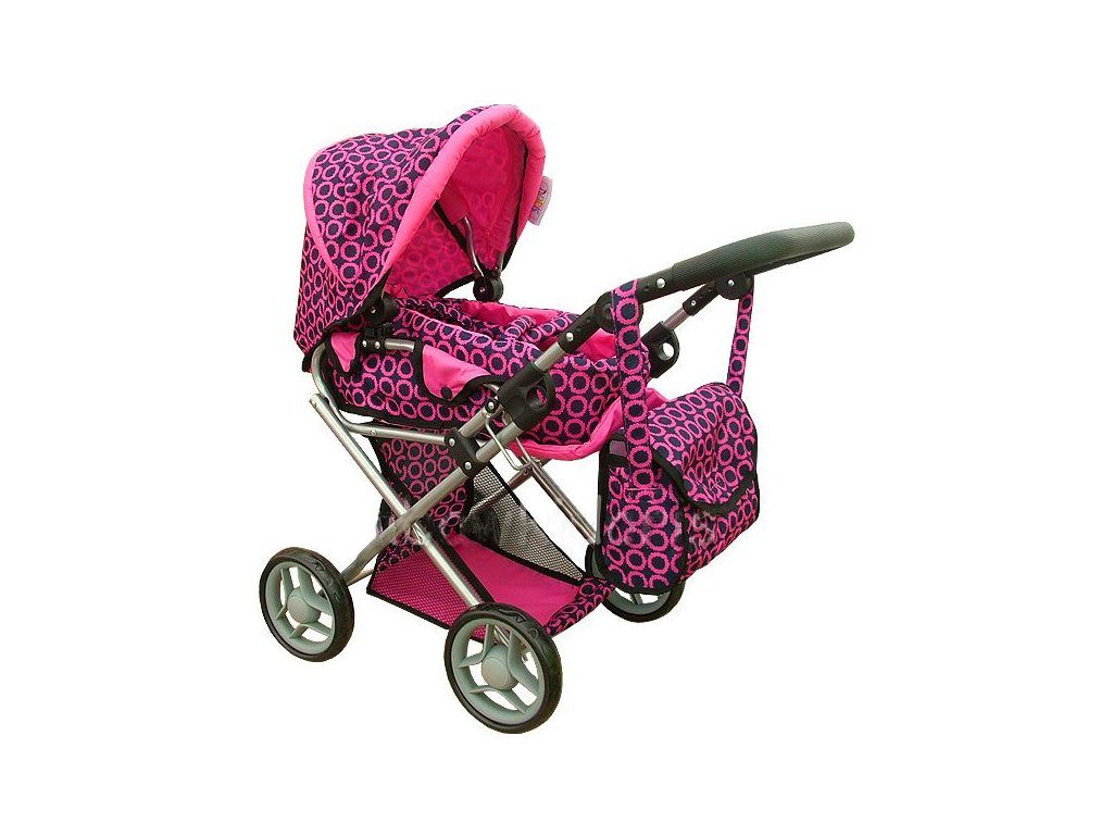 Doris kočárek pro panenky kombinovaný - 9346 růžovo-černý vzor