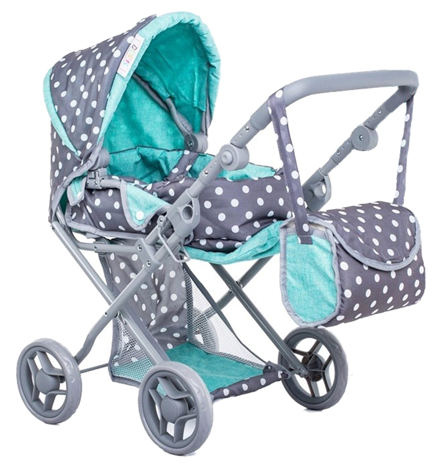 Doris kočárek pro panenky kombinovaný - 9346 šedo-mentolový